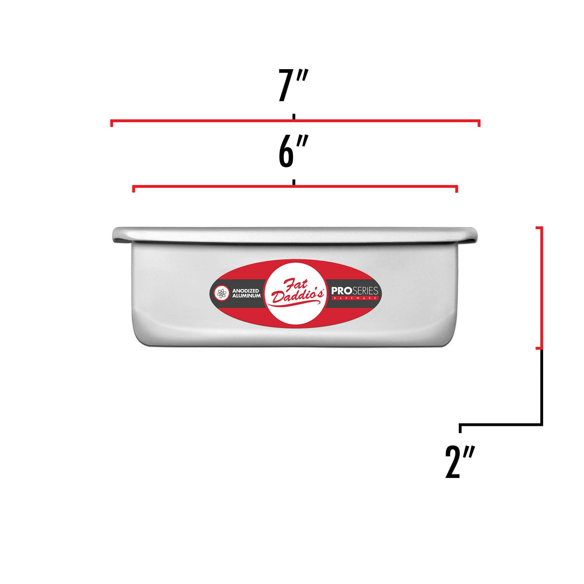 • Q: What are the dimensions of this cake pan? A: The interior of the cake pan measures 6 inches by 6 inches by 2 inches, while the overall dimensions are 7 inches by 7 inches by 2 inches.
