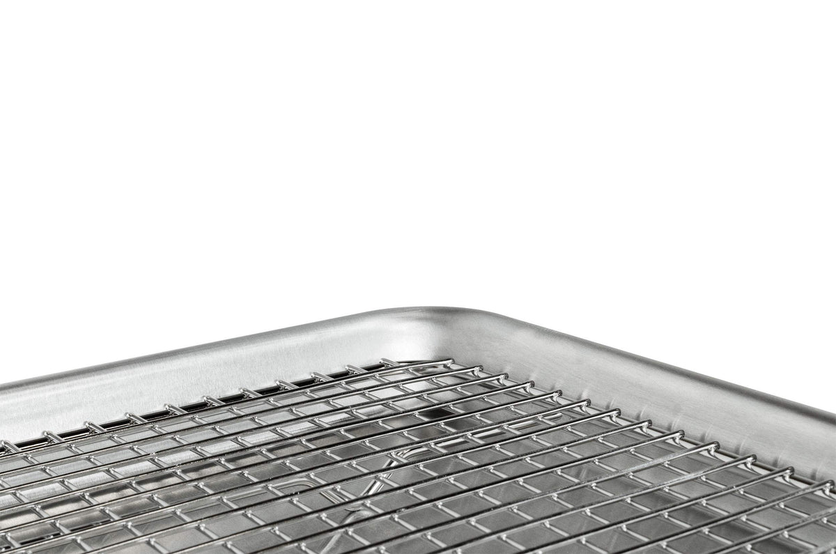 • Q: What is the design of the cooling rack? A: The cooling rack features a cross-wire design, which is ideal for cooling, baking, and roasting.