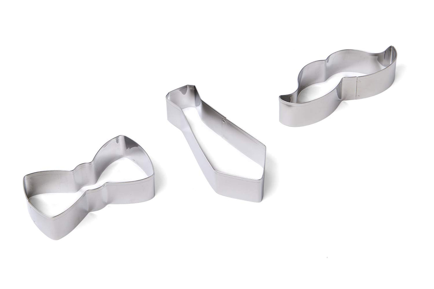 • Q: What shapes are included in the Fox Run 3678 cookie cutter set? A: The Fox Run 3678 cookie cutter set includes three unique shapes: a bow tie, a necktie, and a moustache.