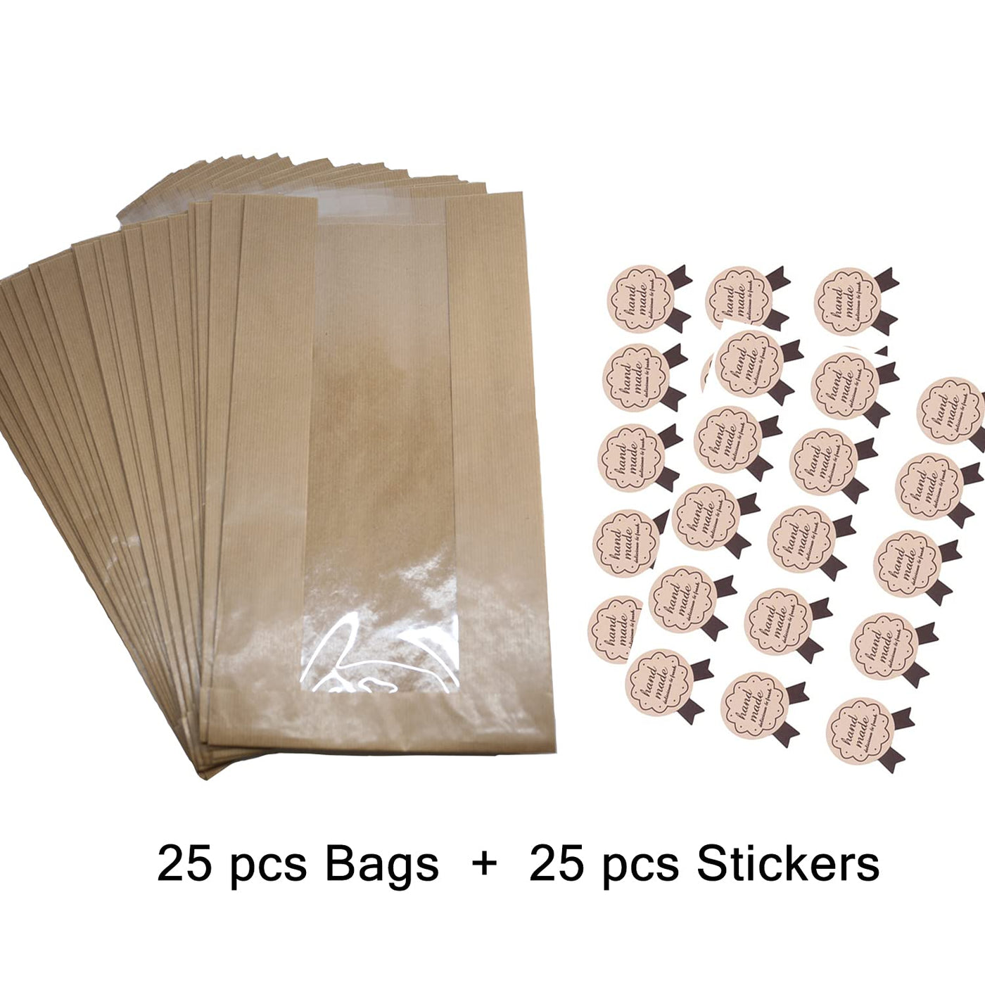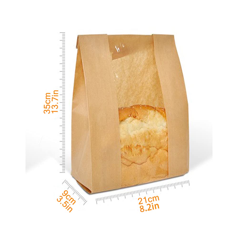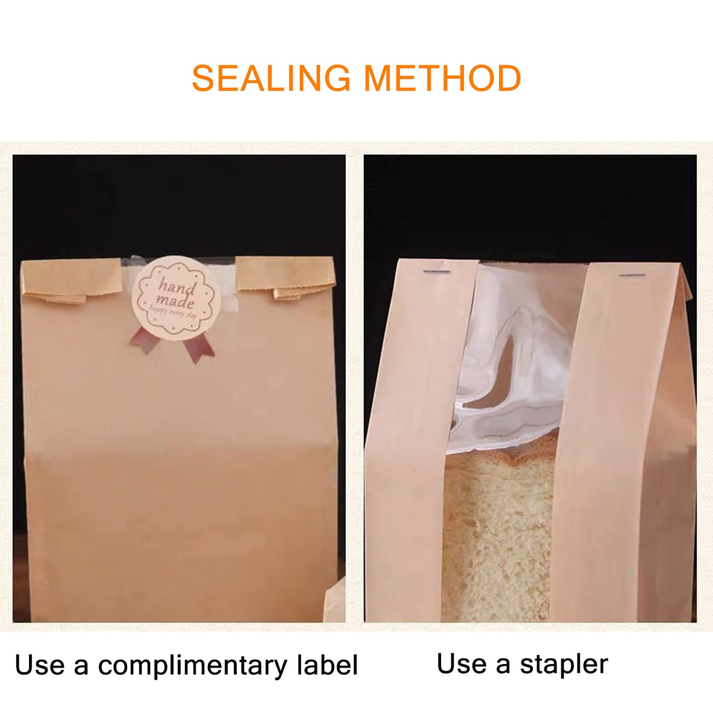 Gm Home 25 Pcs Toast Paper Bag Kraft Bread Bag With Front Window Label Seal Sticker Packaging Paper Bakery Bag For Loaf Pastry C
