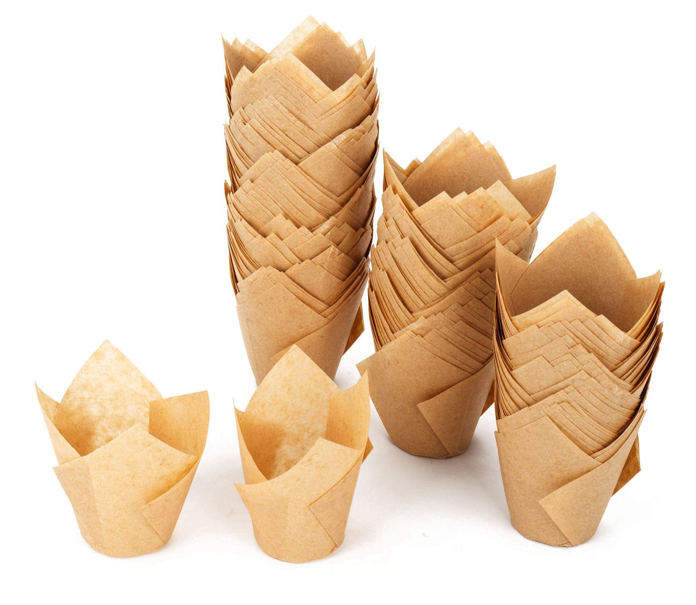 Golden Apple, 200 Pcs Tulip Cupcake Liner Baking Cup Muffin Tins Cups For Weddings, Birthdays, Baby Showers (Medium, Natural)