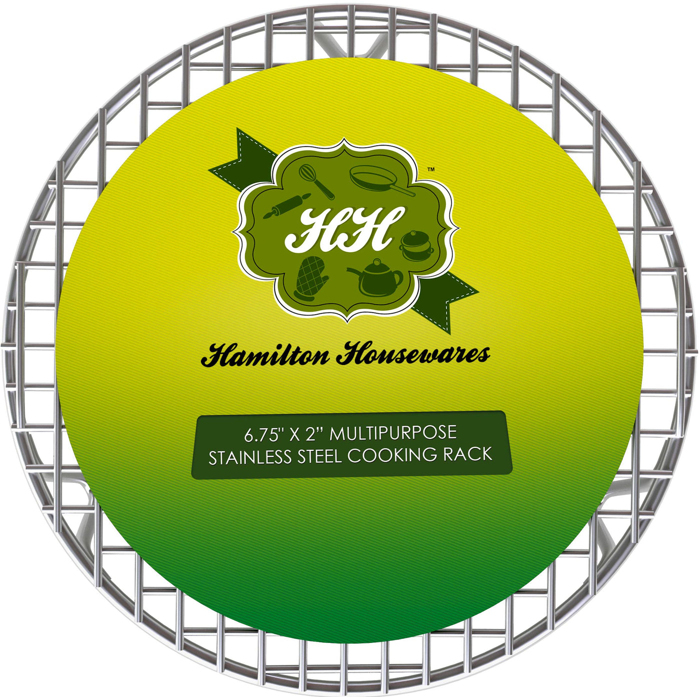 - Q: What is the diameter and height of the Hamilton Housewares Round Rack? A: The Hamilton Housewares Round Rack has a diameter of 6.75 inches and a height of 2 inches.