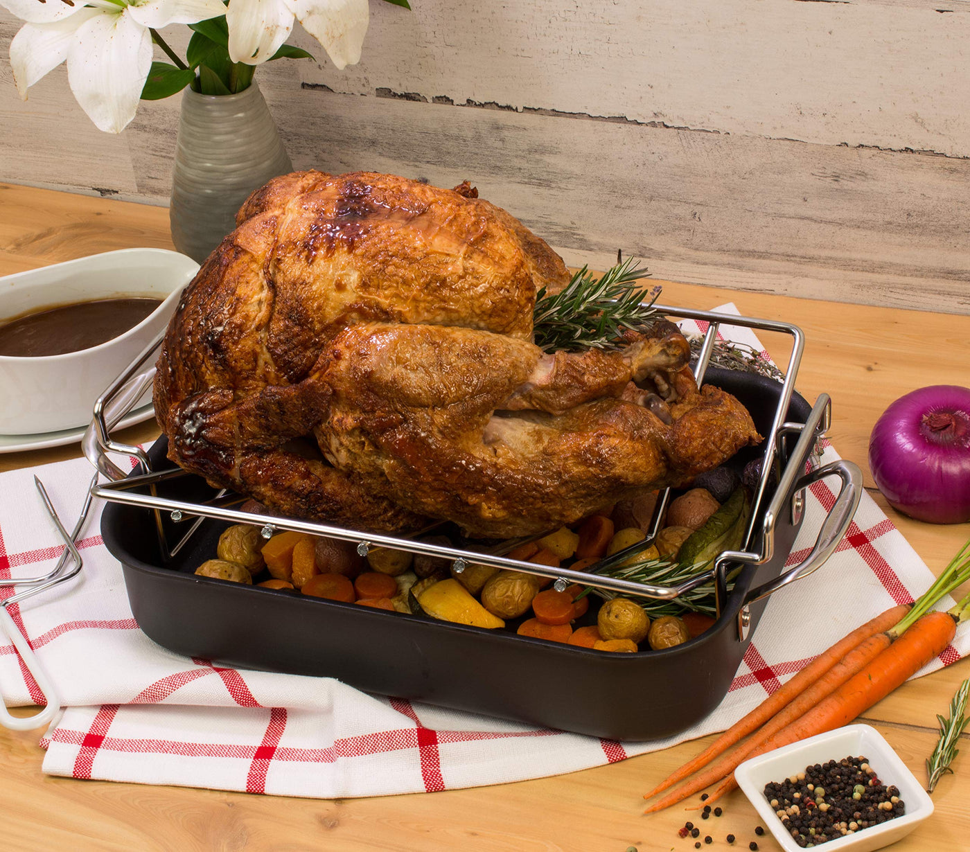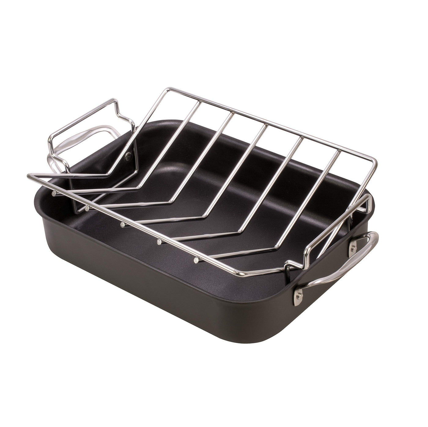 • Q: What materials is the roasting rack made from? A: The roasting rack is made from heavyweight chrome-plated steel wire, ensuring durability and rust resistance.