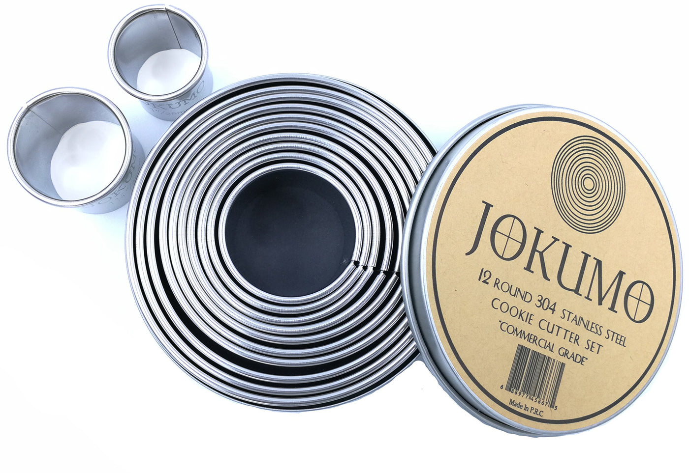 Jokumo 12 Piece Plain Round Pastry/Cookie Cutter Set Heavy Duty Commercial Grade 18/8 304 Stainless Steel - Metal Marked Size -