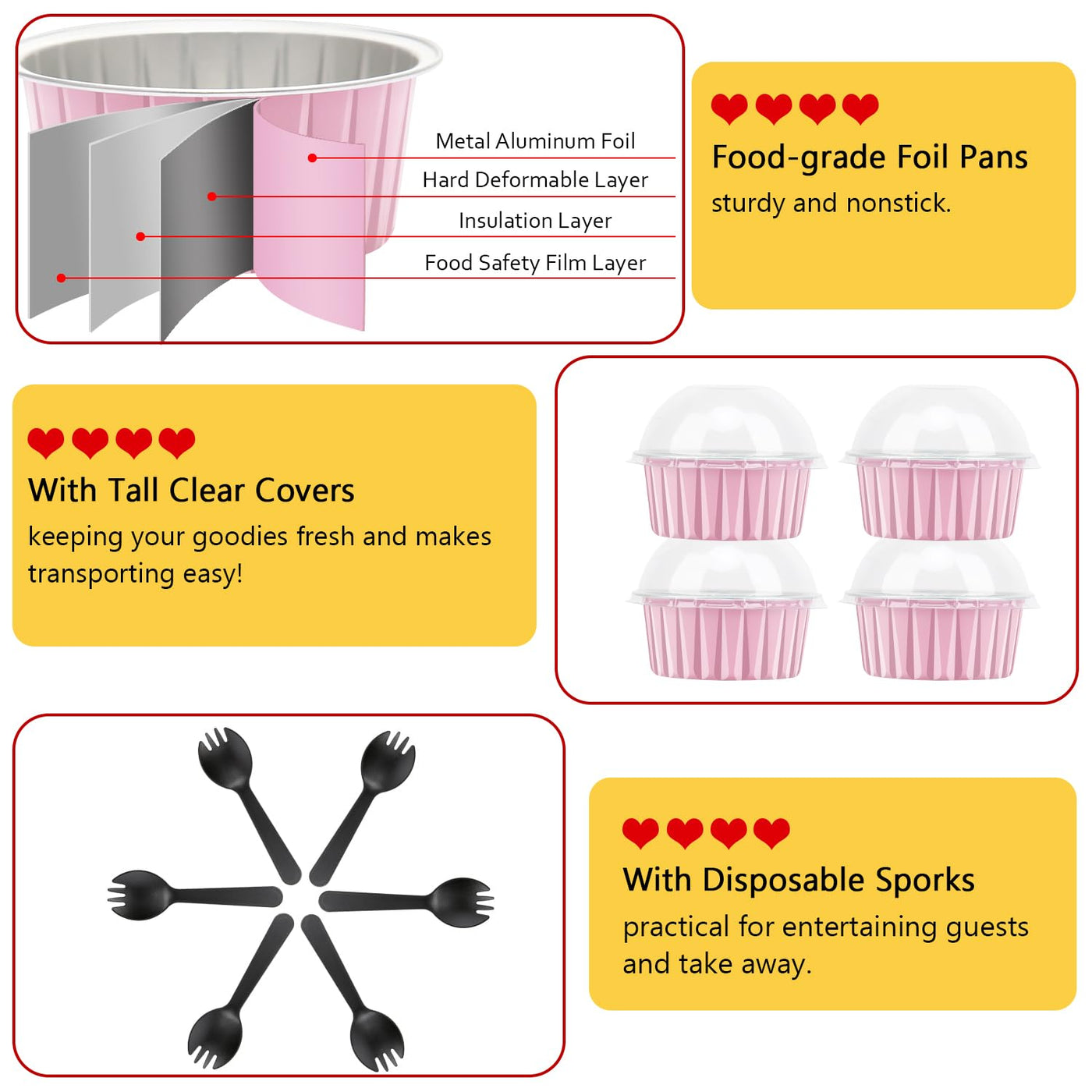Jumbo Muffin Liners With Lids 50 Pack,Free-Air 5Oz Aluminum Foil Cupcake Cups Muffin Tins,Disposable Ramekins Cupcake Baking Pan
