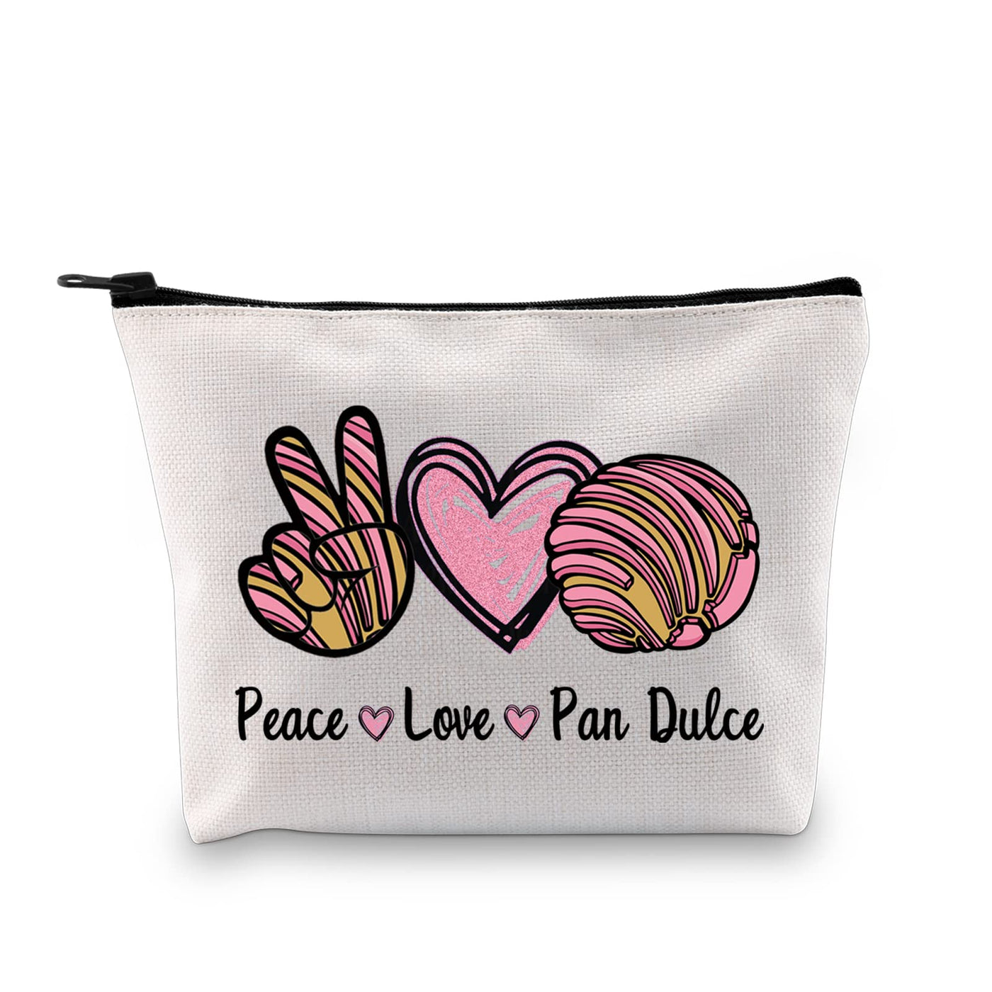 Jxgzso Mexican Bread Lover Gifts Pan Dulce Gift Peace Love Pan Dulce Cosmetic Bag Concha Lover Gift Baker Gifts