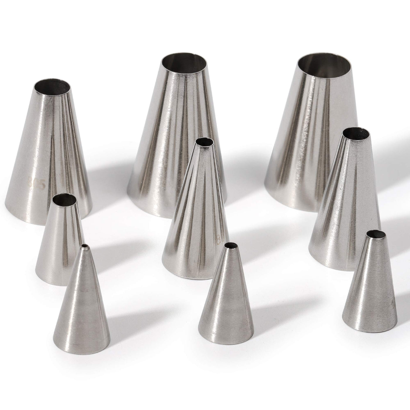 • Q: What is included in the Kayaso Round Piping Tip Set? A: The set includes 9 stainless steel piping tips in graduated sizes and 20 disposable decorating bags.