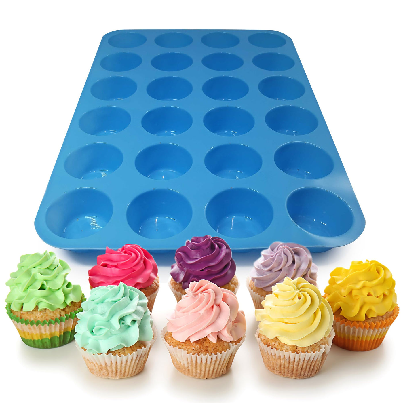 Kitchen Discovery Silicone Mini Muffin Pan Bakes 24 Adorable Mini Cupcakes Or Muffins Without Sticking - Mini Silicone Molds Rel