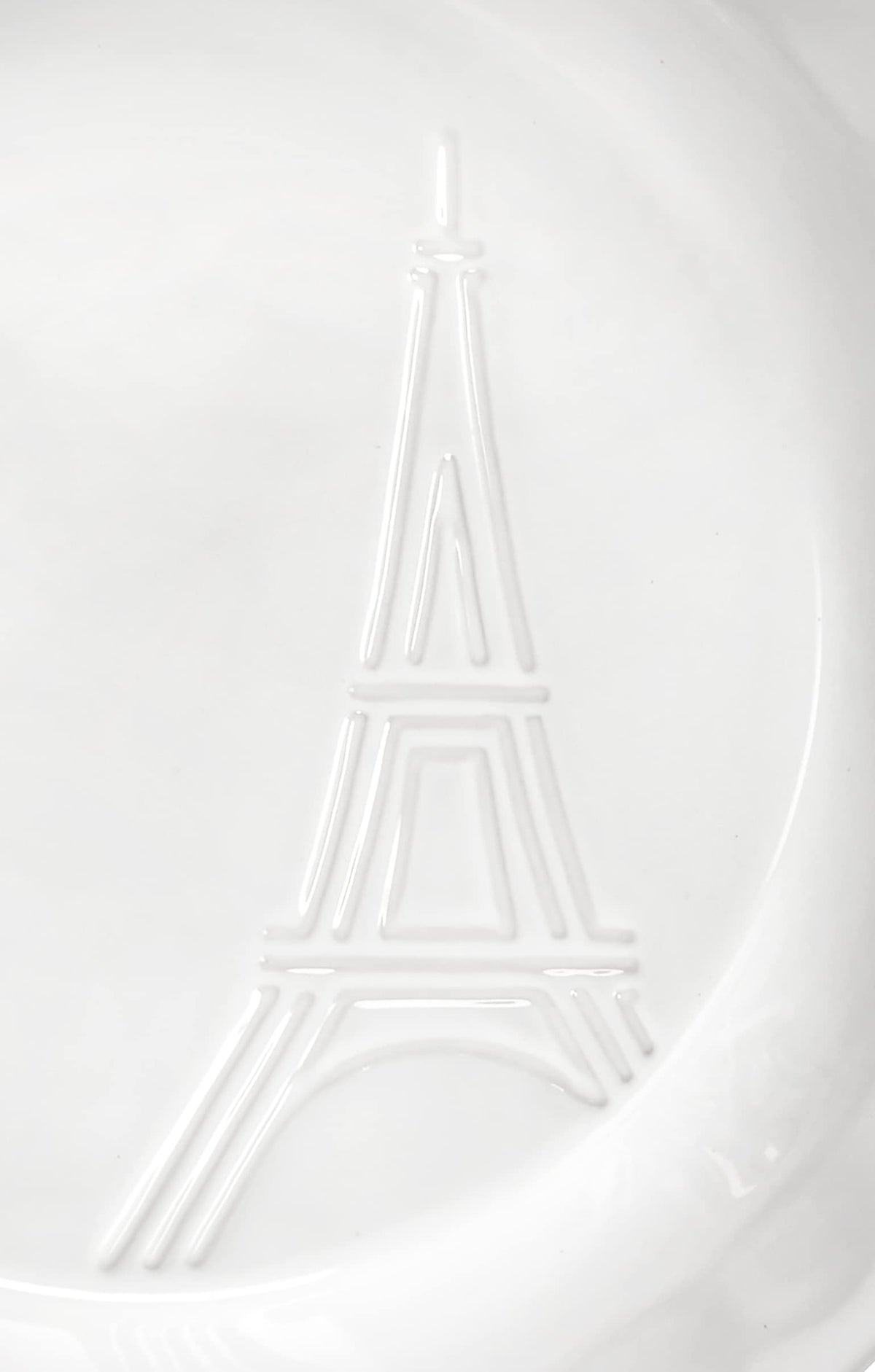 • Q: Is the design of the pie dish purely decorative? A: While the Eiffel Tower design adds aesthetic appeal, it also features an embossed relief that can enhance the presentation when serving.