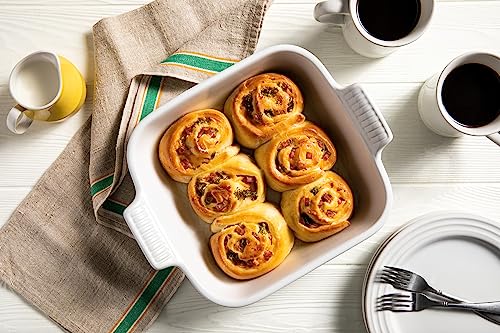 • Q: What types of dishes can I prepare in the Heritage Square Dish? A: You can use this dish for baking desserts, roasting vegetables, marinating meats, and serving layered casseroles.