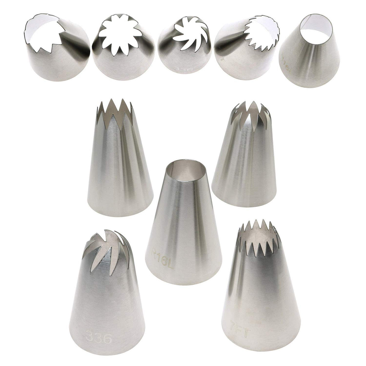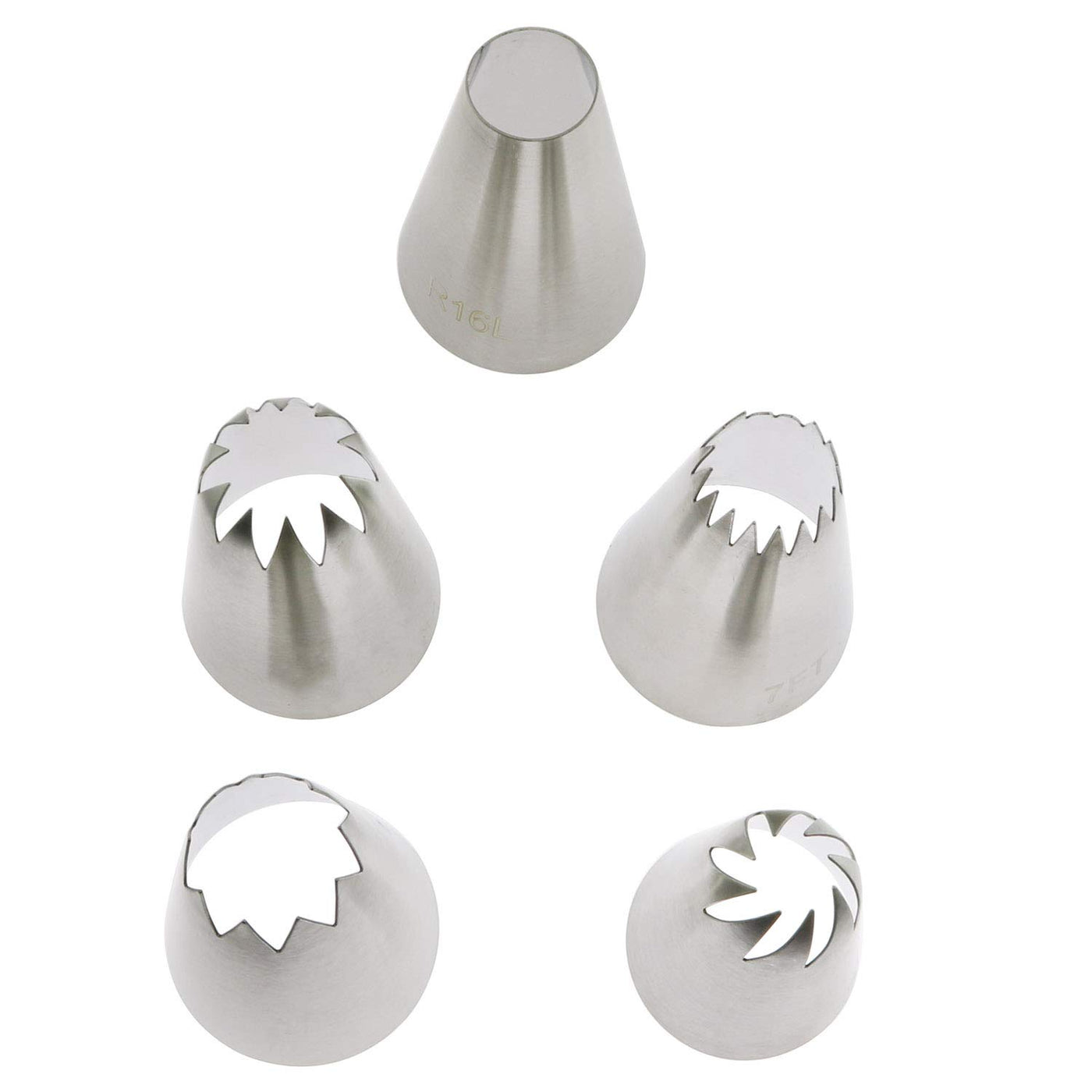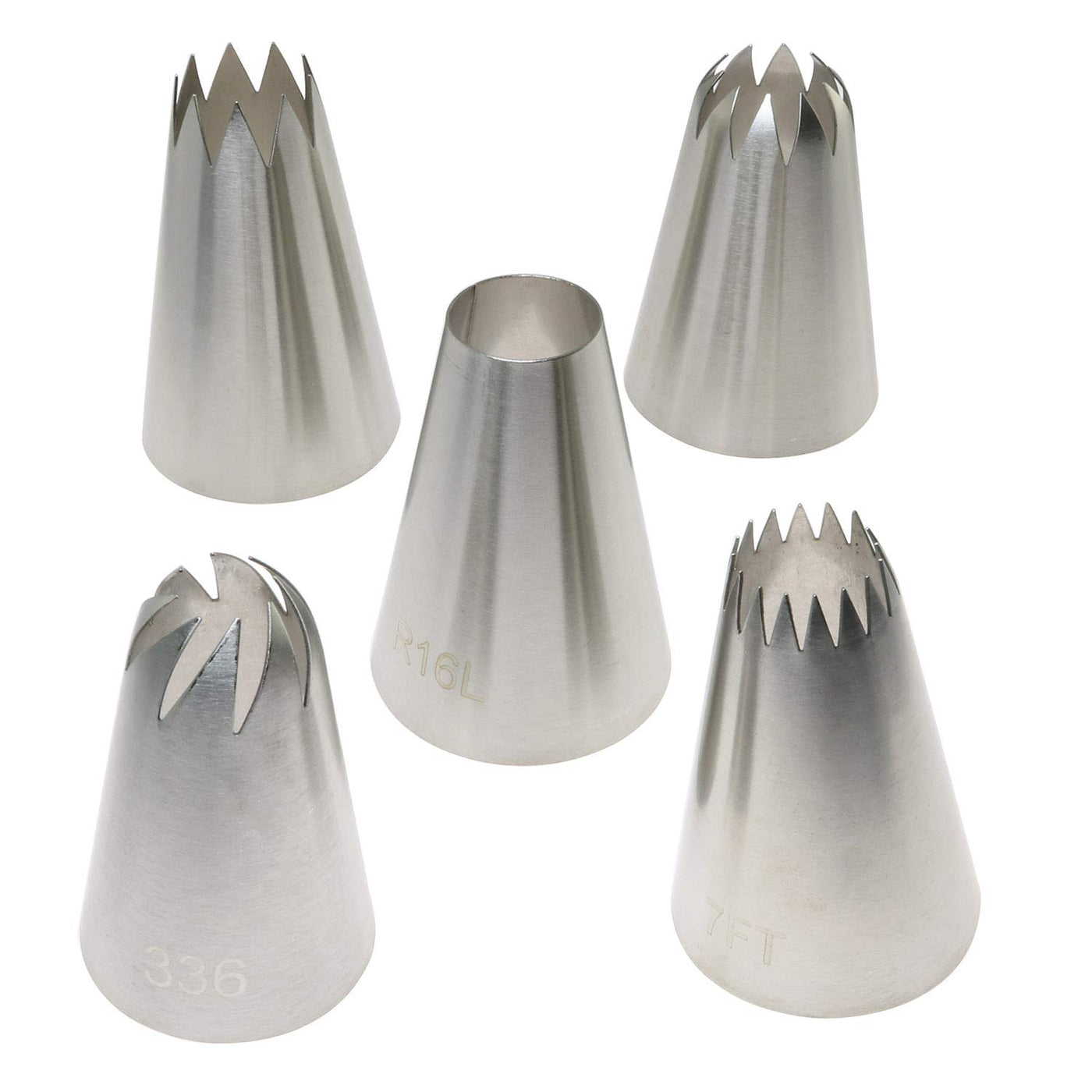 - Q: How many nozzles are included in the set? A: The set includes five icing frosting nozzles, with one nozzle for each size.