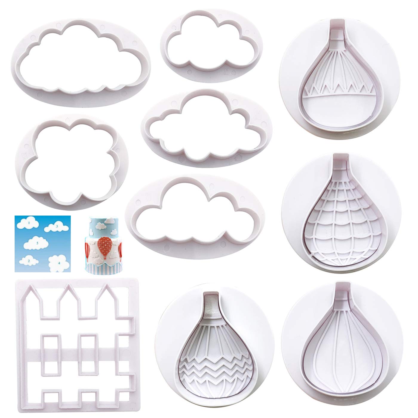 Markeny 10 Pack Cake Fondant Embossing Mold Balloon Cloud Fence Cookie Cutters Biscuit Moulds For Sugarcraft Fondant Baking Mold