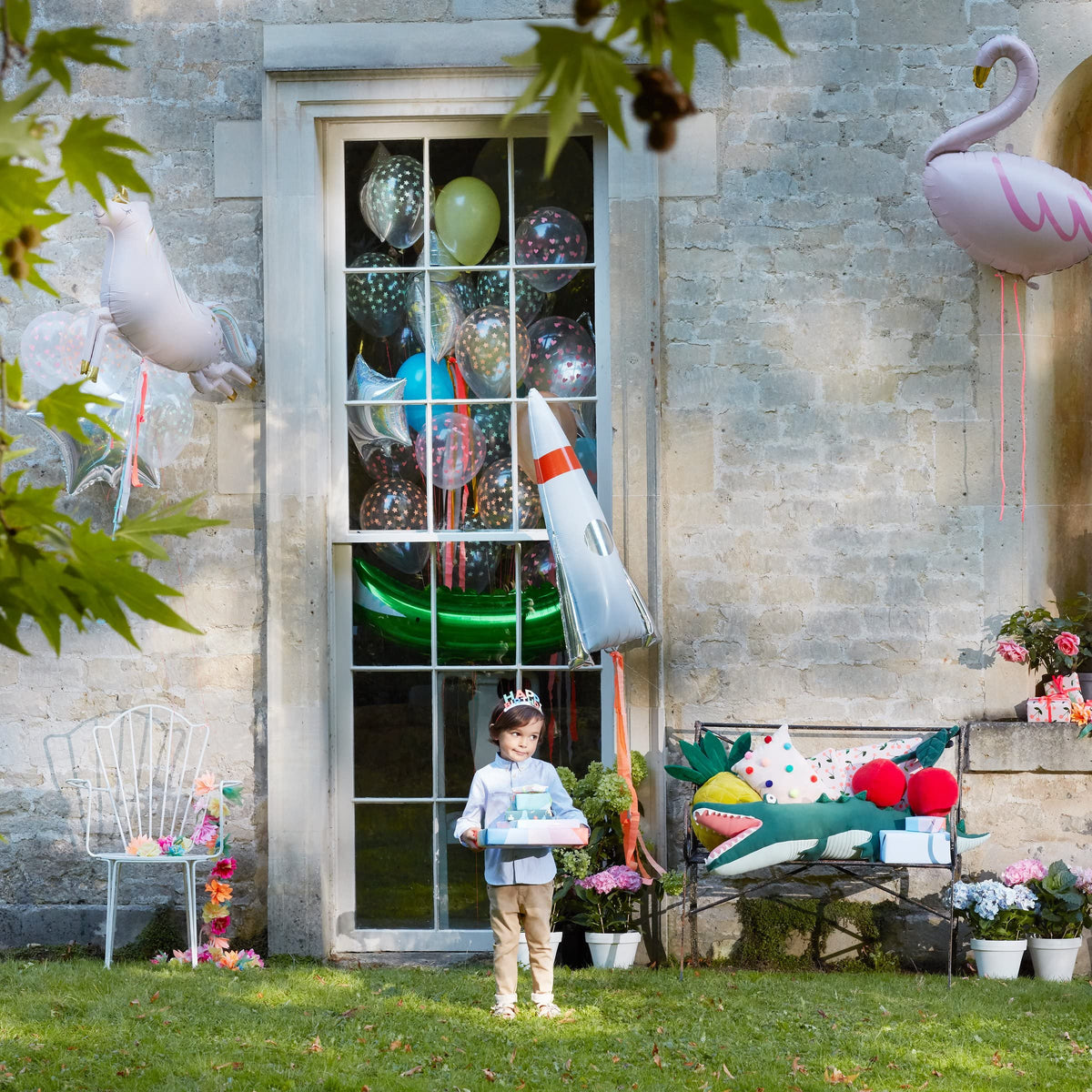• Q: What is the size of the Meri Meri Magical Unicorn Foil Balloon? A: When inflated, the balloon spans 1 meter in length, making it a large and eye-catching decoration.