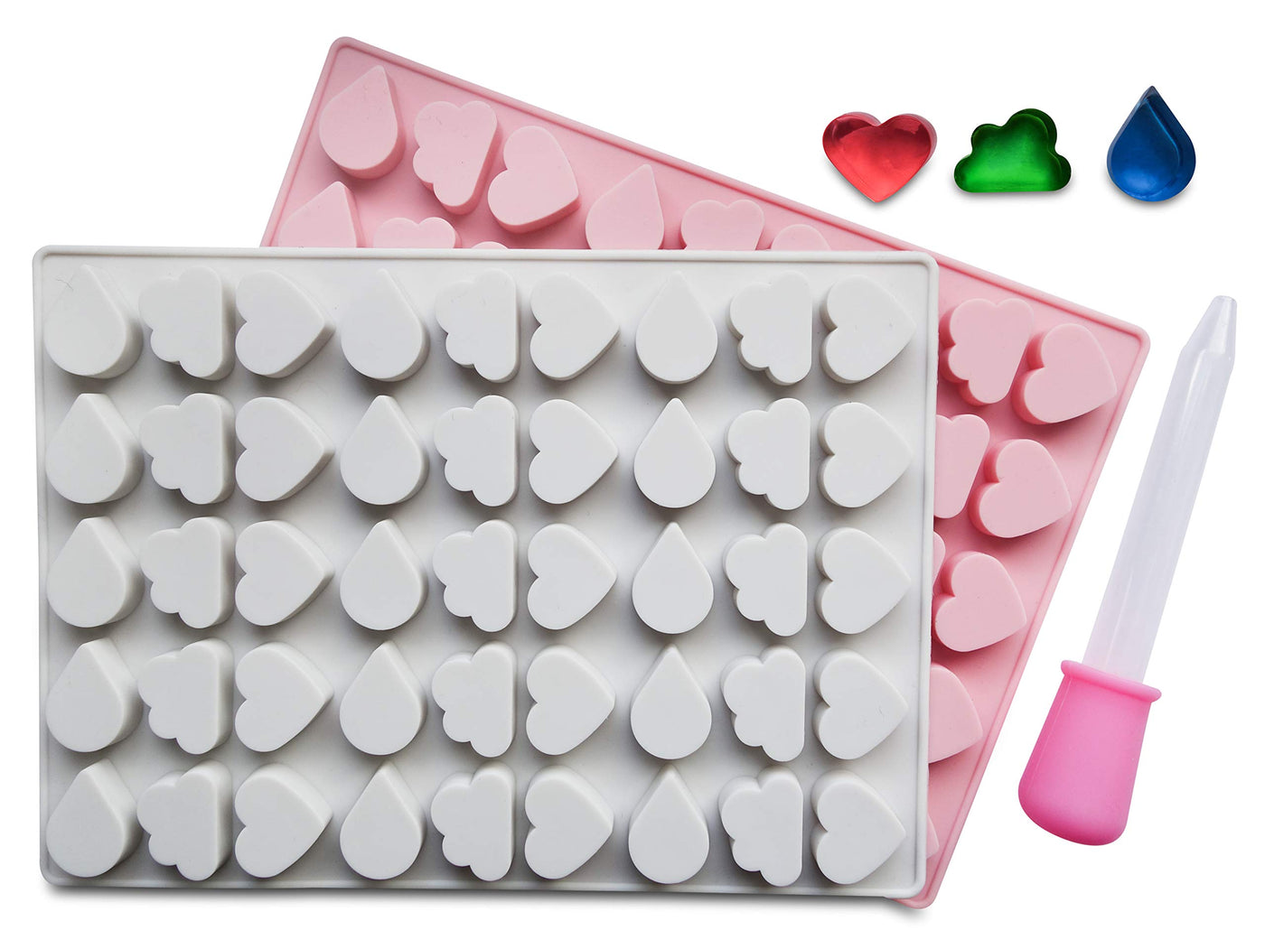 Mini Heart, Cloud & Raindrop Silicone Mold 2 Pack - Bpa Free, Perfect For Gelatin Gummies, Chocolate, Caramel, Ice Cubes, Bonus