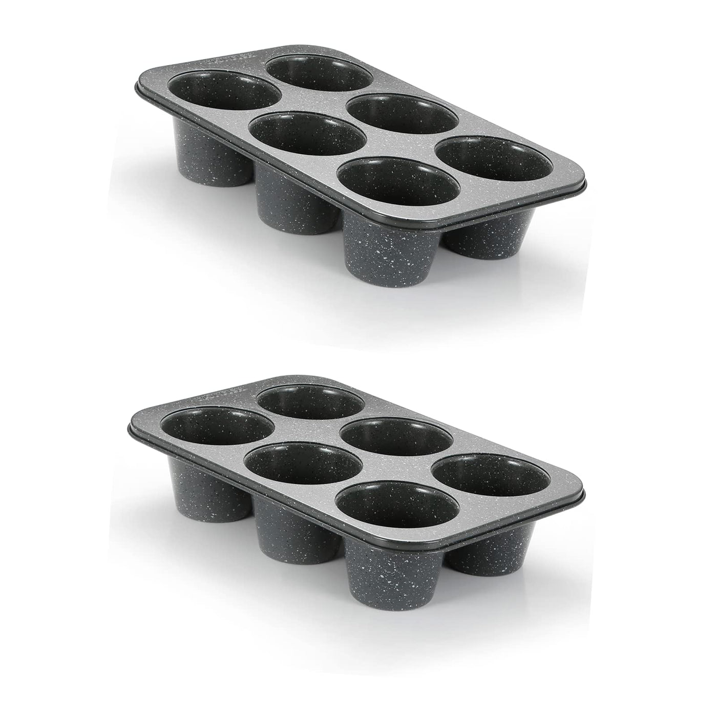 Monfish 2Pcs Deep Jumbo Muffin Pan 6 Cup Carbon Steel Black Stone Non Stick Coating Muffin Tin 3.5Diax3 Cup