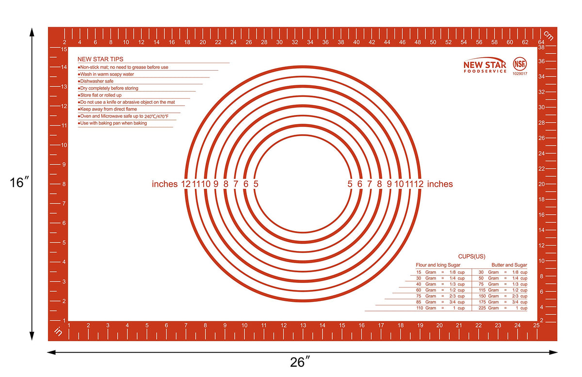 New Star 1029017 Non-Slip Silicone Pastry Mat, Extra Large With Measurements, 16X26'', Nsf International Certified