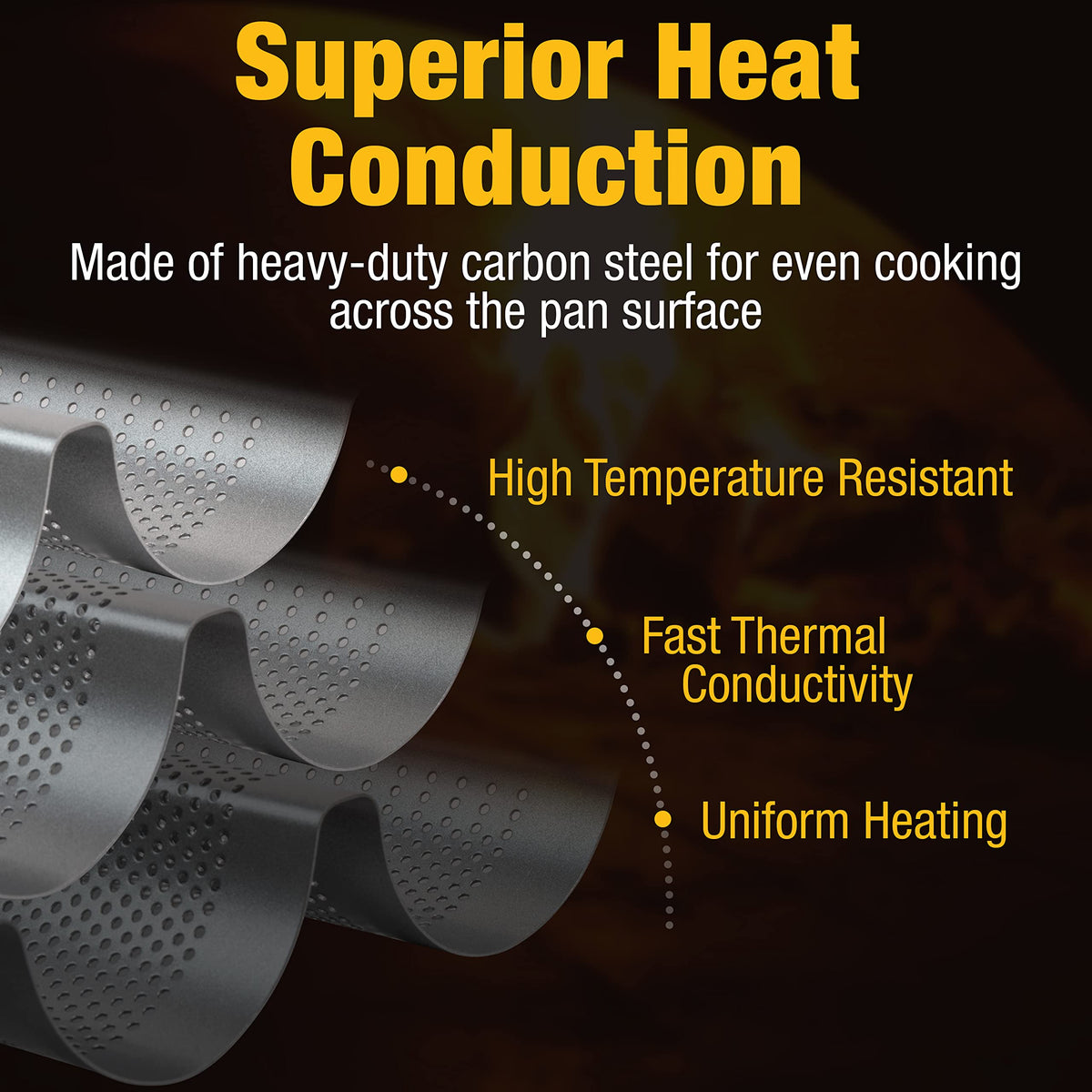 Nonstick Baguette Pan For Baking - 15'' X 13'' Easy To Remove & Perforated French Bread Baking Pan - Long French Bread Pan & Ita