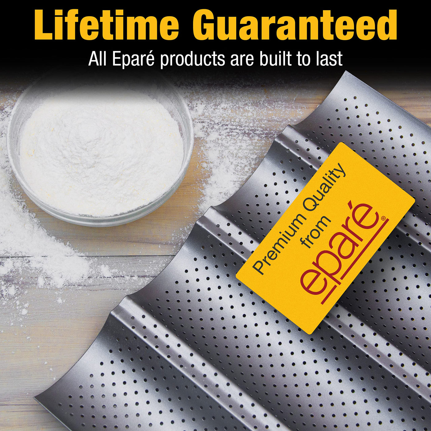 - Q: Does the pan come with a warranty? A: Yes, the Eparé Baguette Pan is backed by a Limited Lifetime Warranty for added peace of mind.