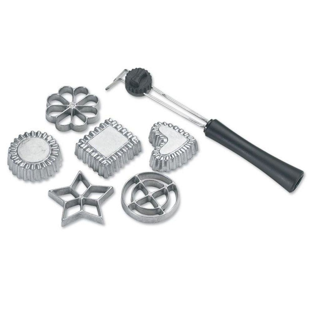 • Q: Are there different molds included in the set? A: Yes, the set includes star, floral, and maze molds for rosettes, as well as fluted heart, square, and round molds for timbales.