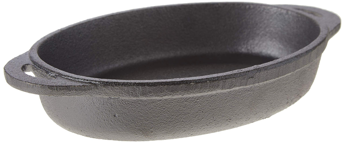 • Q: Is the dish suitable for both indoor and outdoor cooking? A: Yes, the Cast Iron Oval Single Serving Dish is versatile and can be used for cooking both indoors and outdoors.