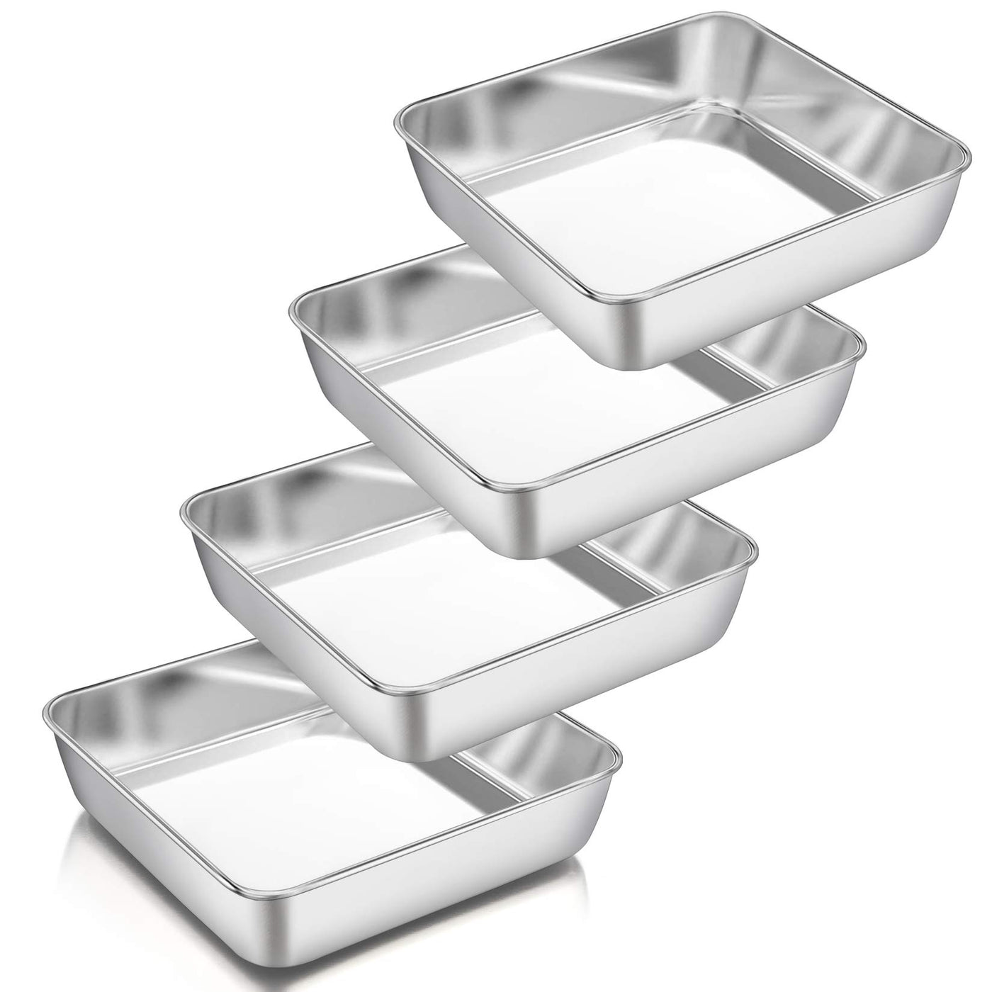 P&P Chef 8 Inch Square Baking Pan Set Of 4, Square Cake Pans, Stainless Steel Deep Bakeware For Lasagna Bread Brownie, 8 8