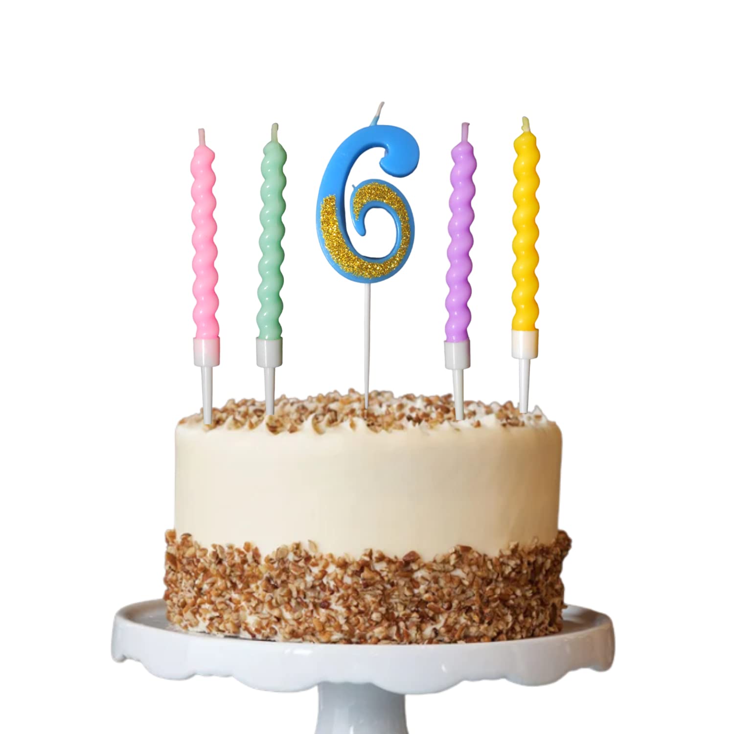 DescriptionParty Decorz Number 6 Candle | Six Number Candle | Six Number Blue Glitter Candle With Pastel Twisted Candle Set Of 5pcs For Birthday ,Anniversary , Surprise Party Cake Decoration Candle