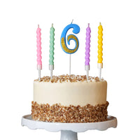 Party Decorz Number 6 Candle | Six Number Candle | Six Number Blue Glitter Candle with Pastel Twisted Candle Set of 5pcs for Bir