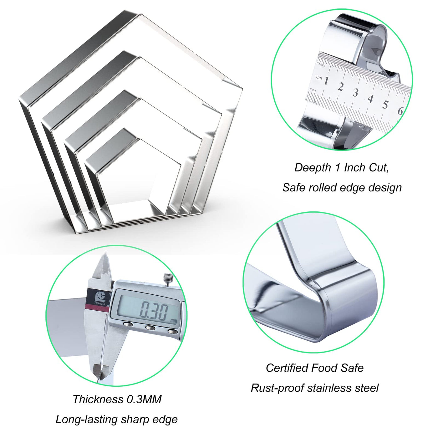 Pentagon Cookie Cutter Set Large - 5 Inch, 4 Inch, 3 Inch, 2 Inch - Geometric Cookie Cutters Shapes Molds - Stainless Steel