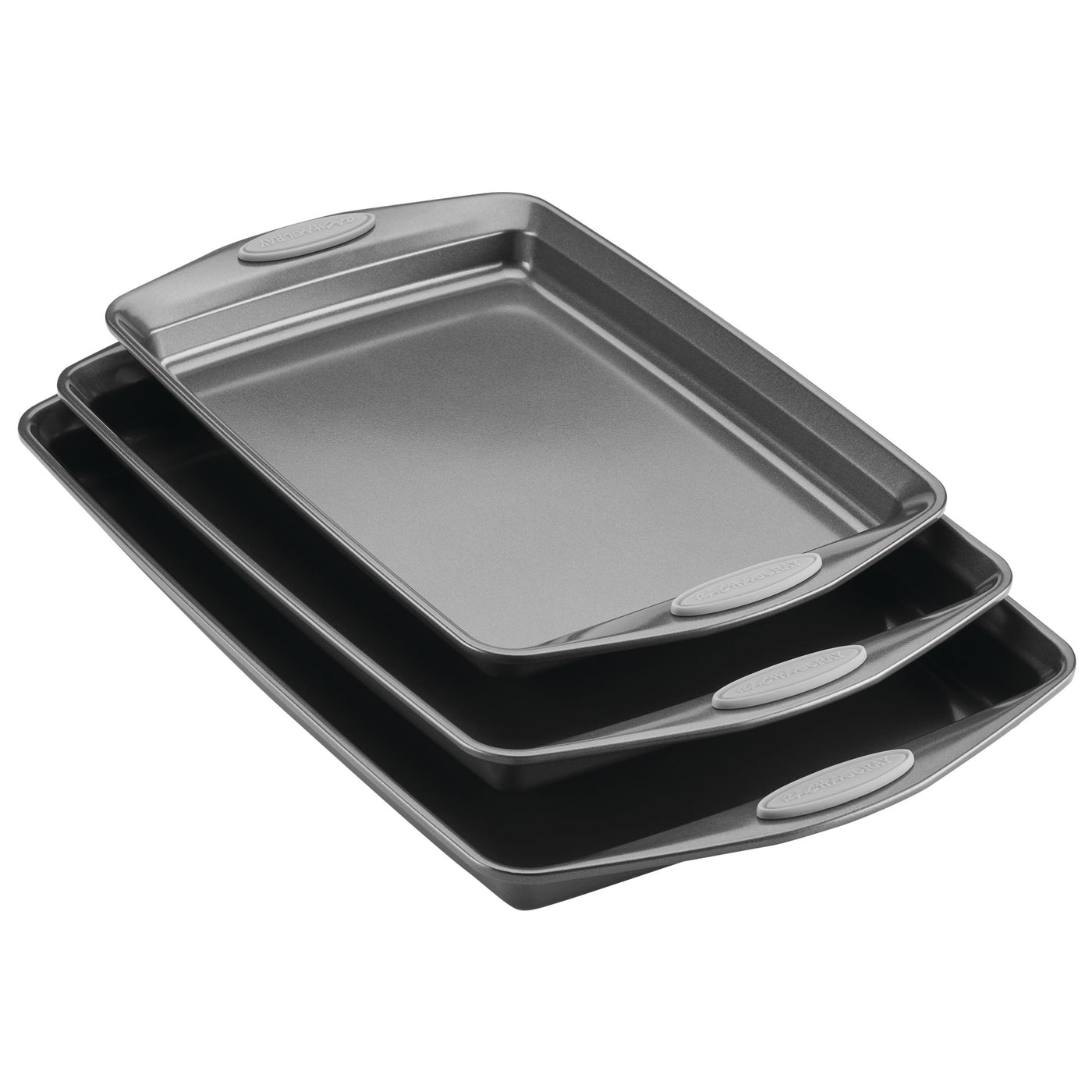 Rachael Ray Nonstick Bakeware Set With Grips, Nonstick Cookie Sheets / Baking Sheets - 3 Piece, Gray With Sea Salt Gray Grips