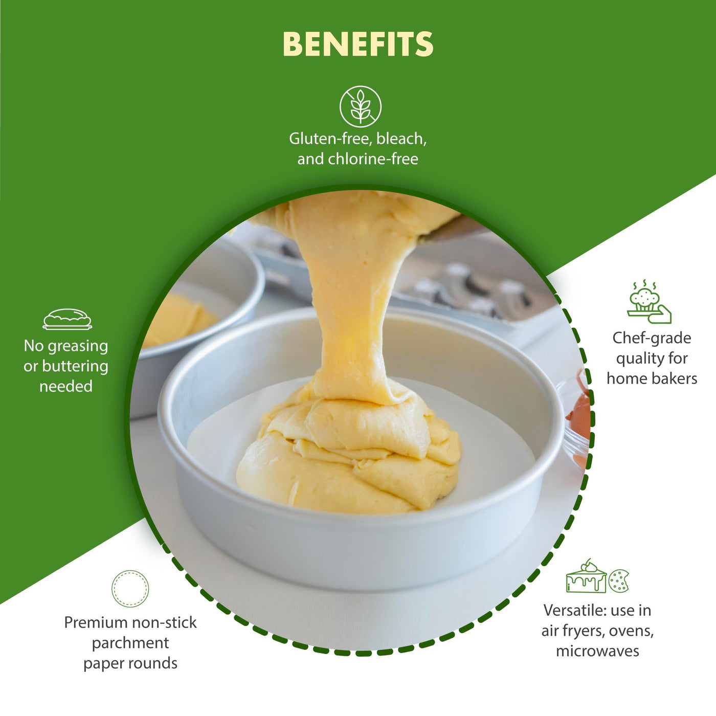 - Q: Do I need to grease the parchment paper before baking? A: No, you do not need to grease the parchment paper circles. They are designed to be non-stick, allowing for easy release of baked goods.