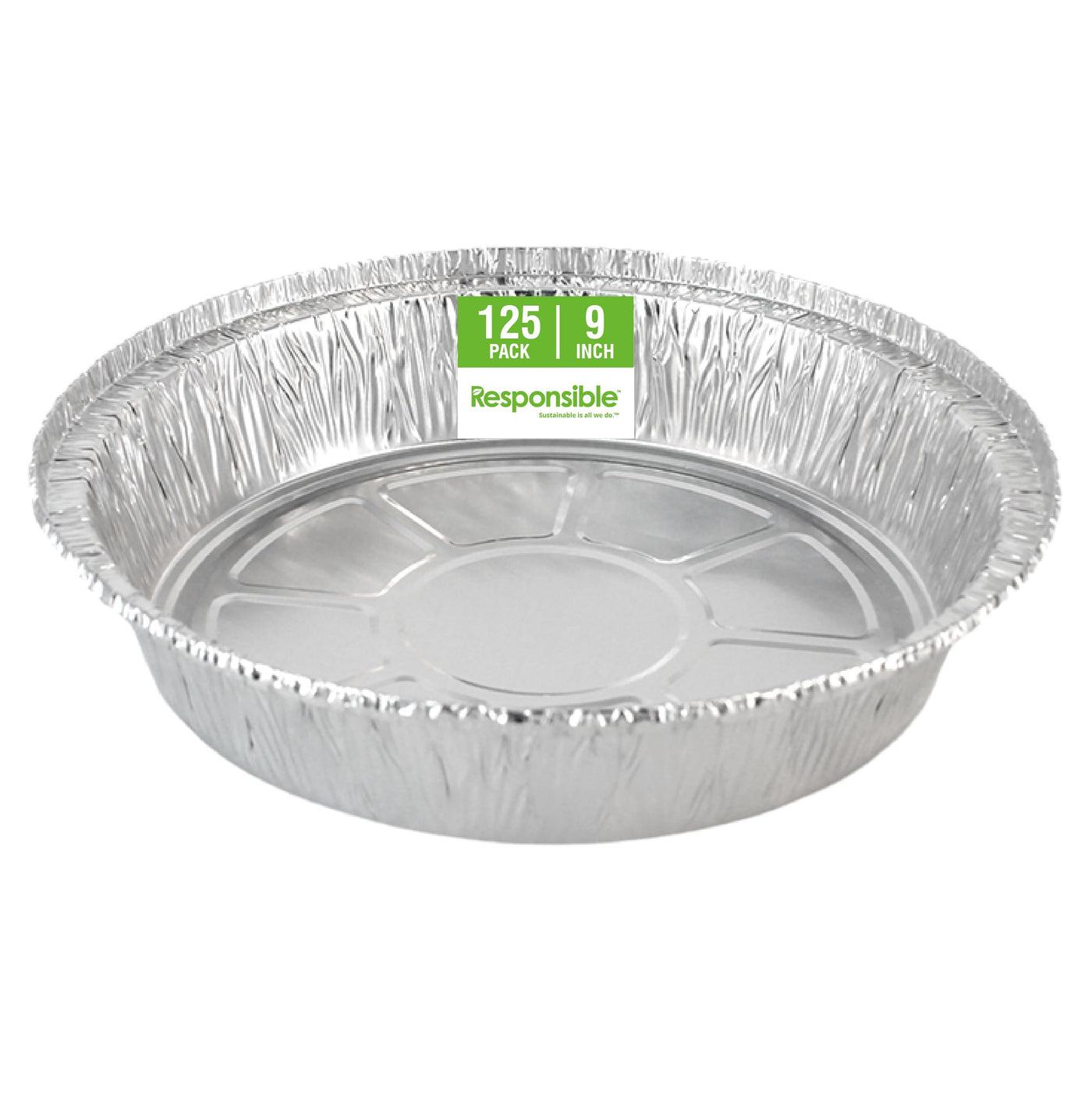 - Q: What material are the Responsible Products cake pie pans made from? A: The Responsible Products cake pie pans are made from premium quality aluminum foil, which is heavy-duty, recyclable, and stackable for convenient storage.