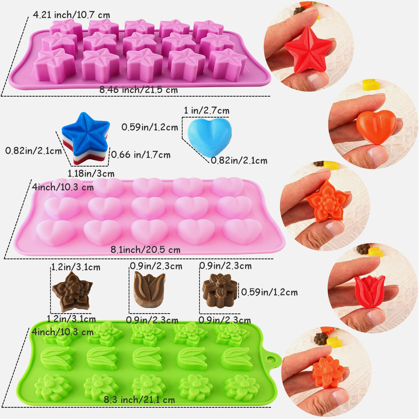 • Q: What are the dimensions of the molds? A: The specific dimensions of each mold are not provided, but they are designed to accommodate a variety of baking and crafting needs.