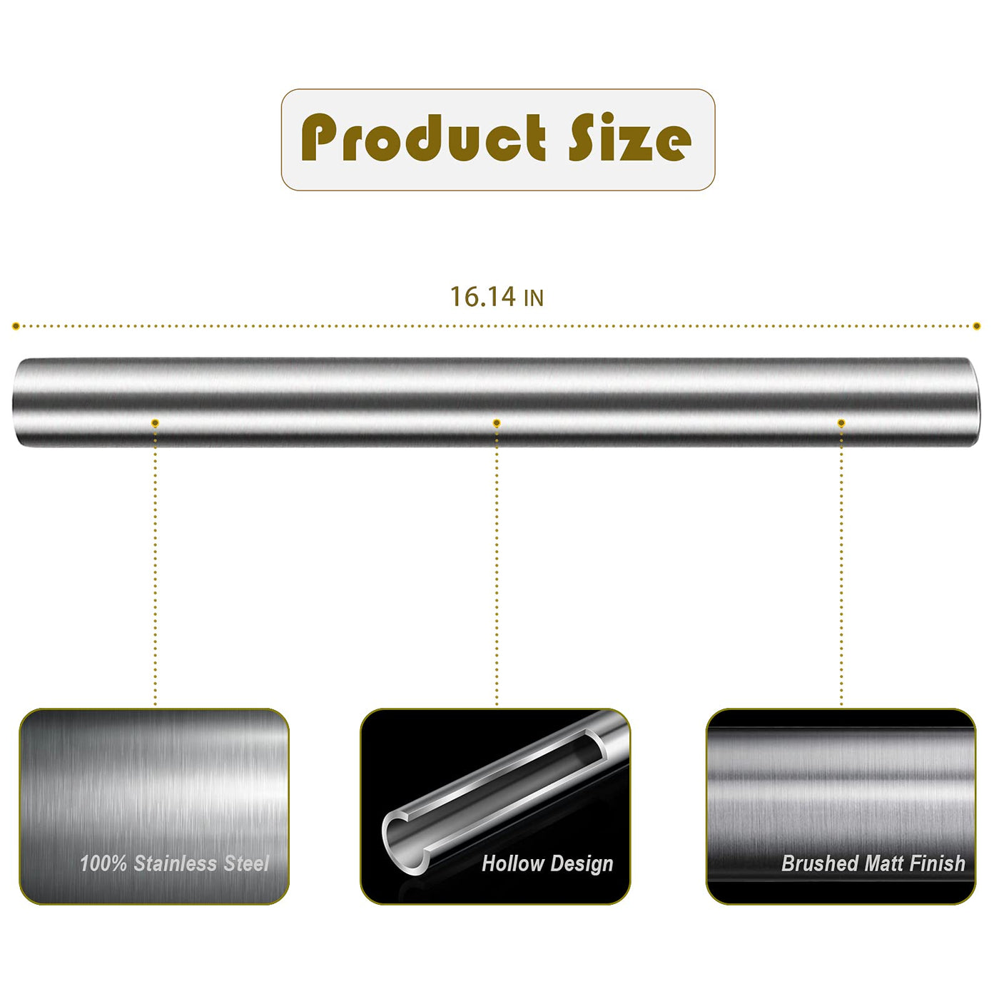 - Q: What is the length of the stainless steel rolling pin? A: The stainless steel rolling pin measures 15.4 inches in length, making it suitable for various baking tasks.