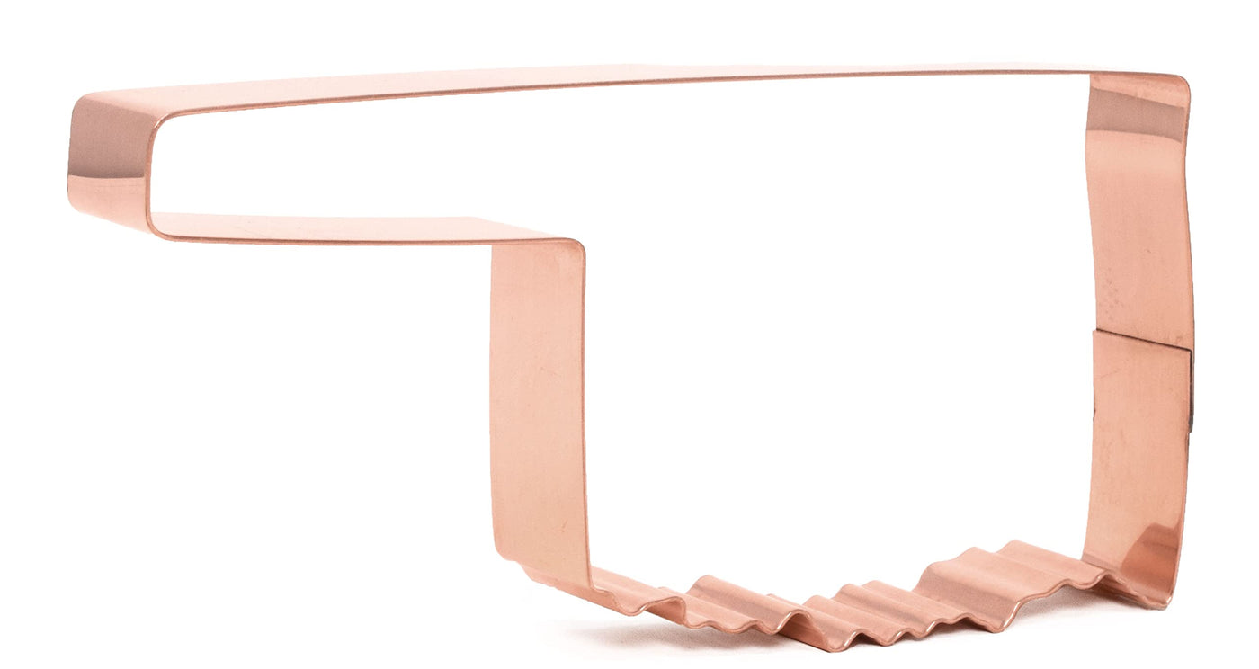 • Q: What material is the Oklahoma State Copper Cookie Cutter made from? A: The cookie cutter is made from solid heavyweight copper, ensuring durability and longevity.
