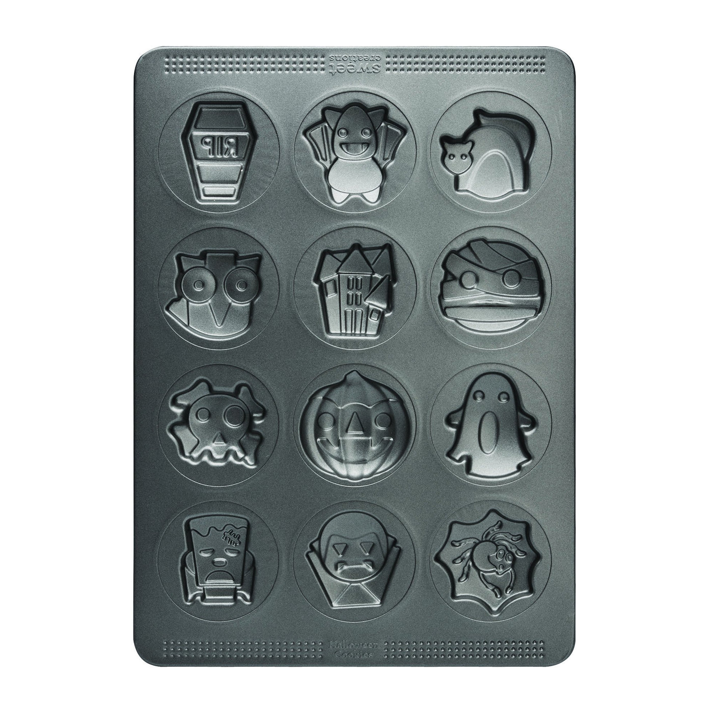 Sweet Creations 12-Cup Halloween Non-Stick Cookie Mold, Gray