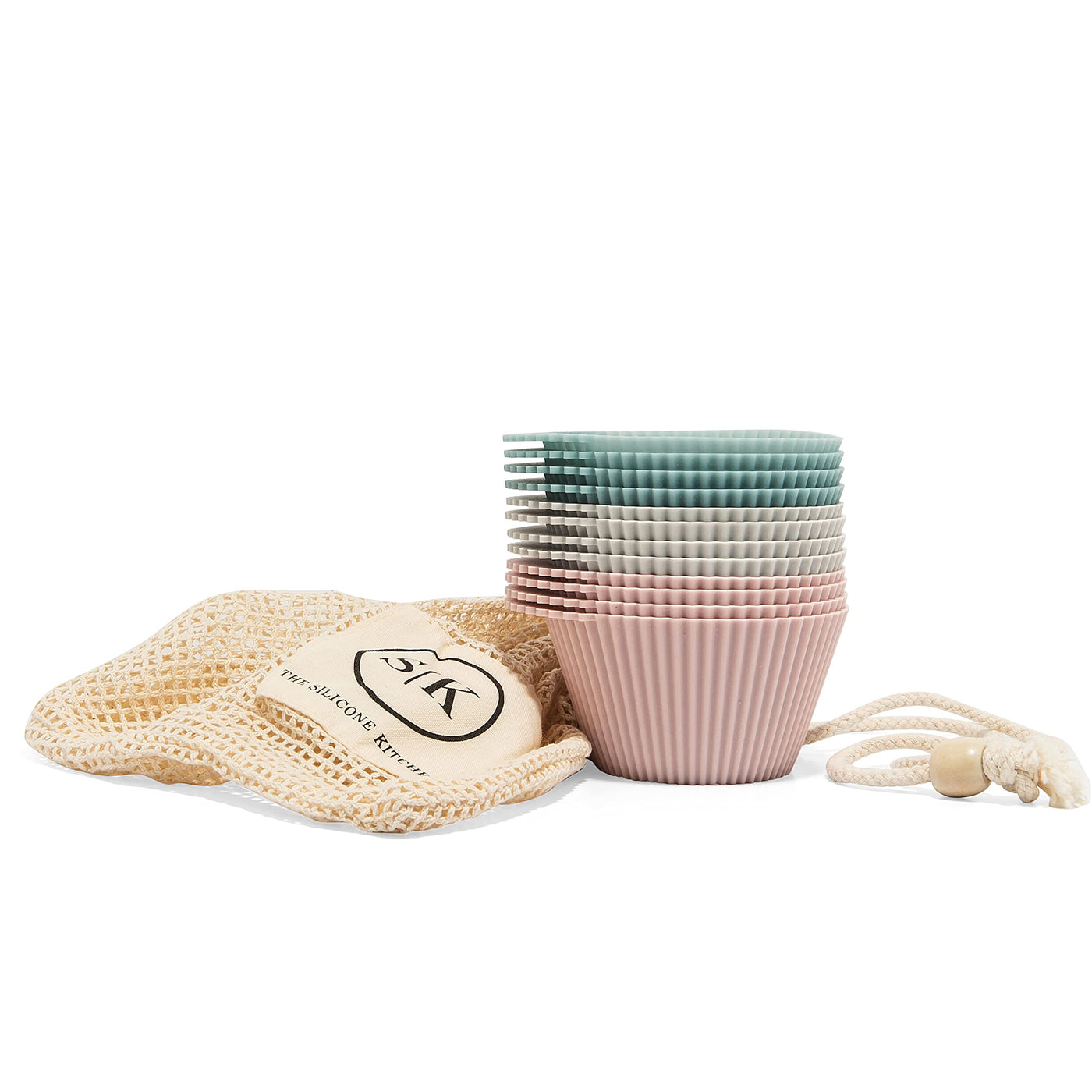 - Q: What colors are available for the silicone baking cups? A: The silicone baking cups come in three beautiful colors: Dusty Rose, Dusty Blue, and Pearl Gray.