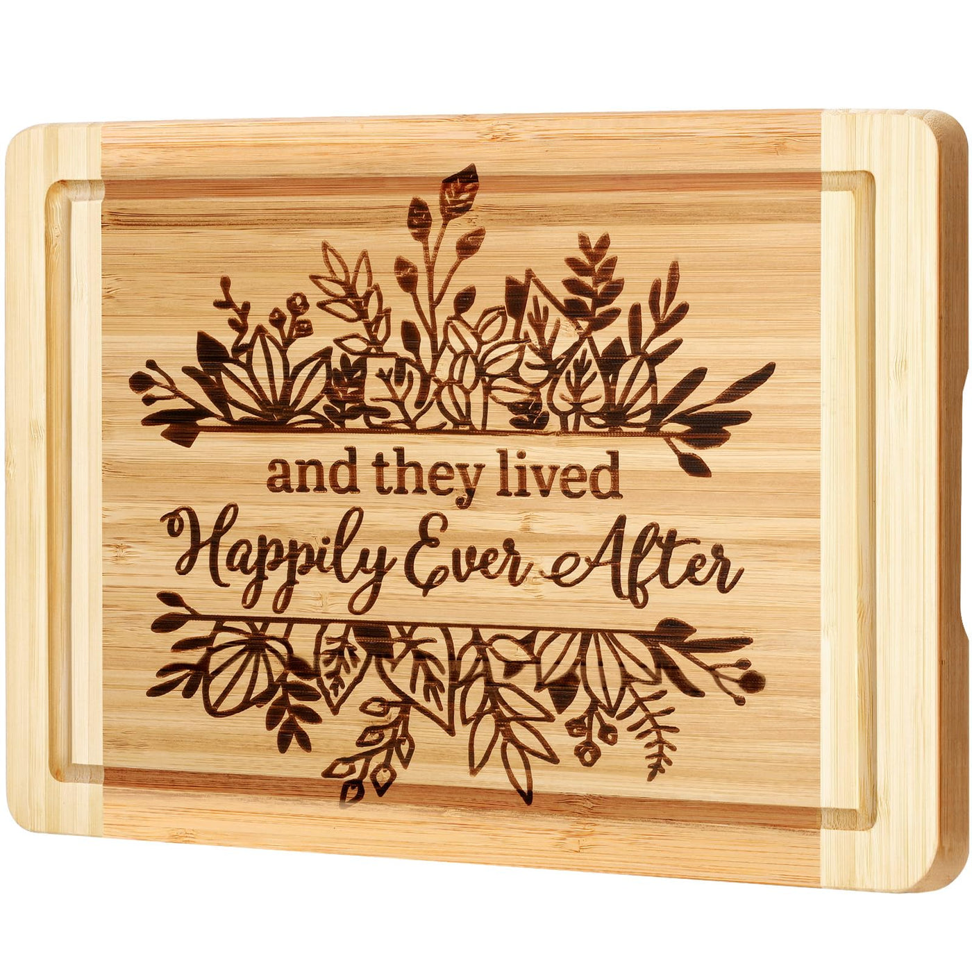 Wedding Gift for Couple 2025, Engraved Cutting Board Bridal Shower Gifts for Bride and Groom Engagement, They Lived Happily Ever