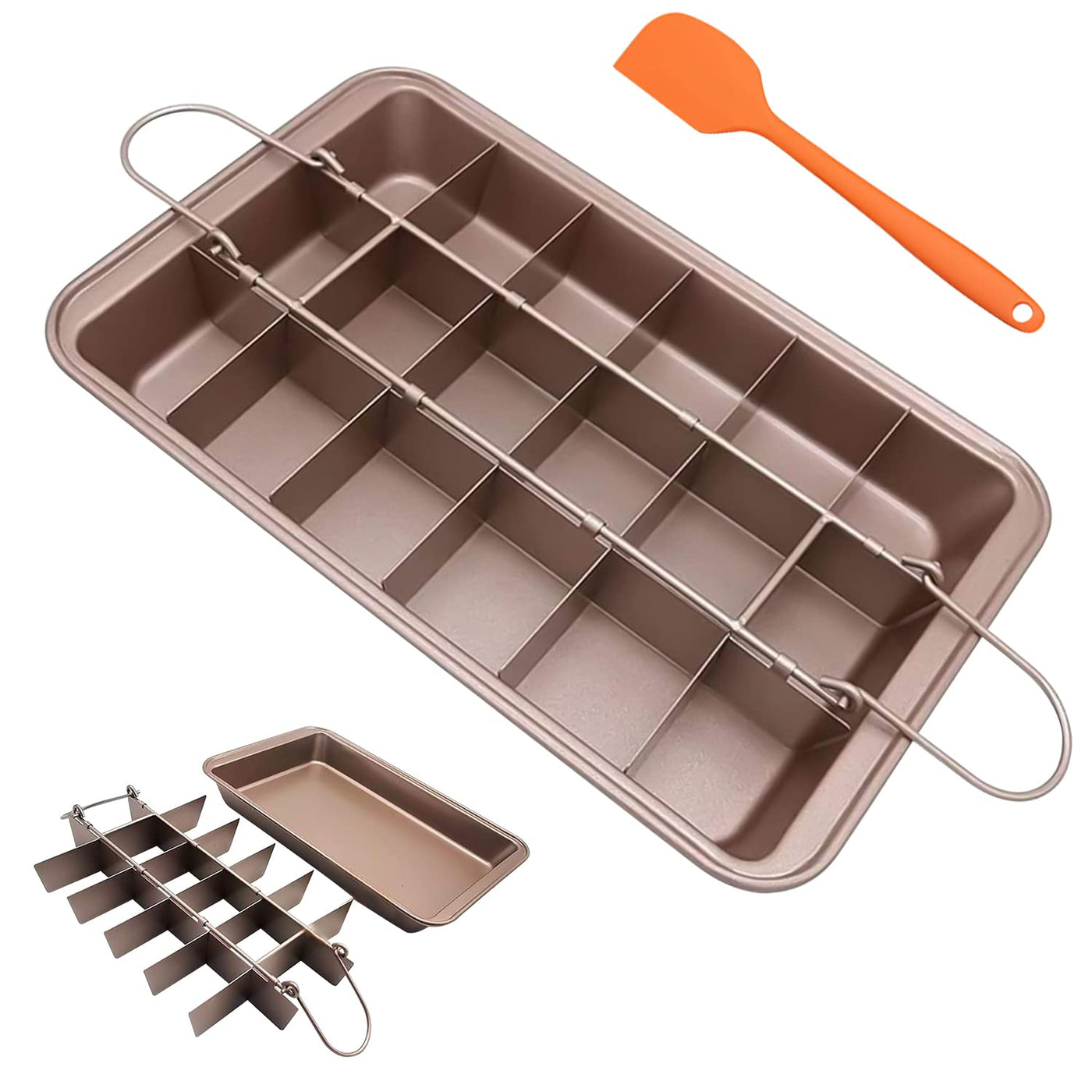 Wsnb Brownie Pan, 18 Pre-Slicer Carbon Steel Baking Pans, Brownie Cutter, Brownie Tray With Oil Brush, Pre-Cut Square Molds For