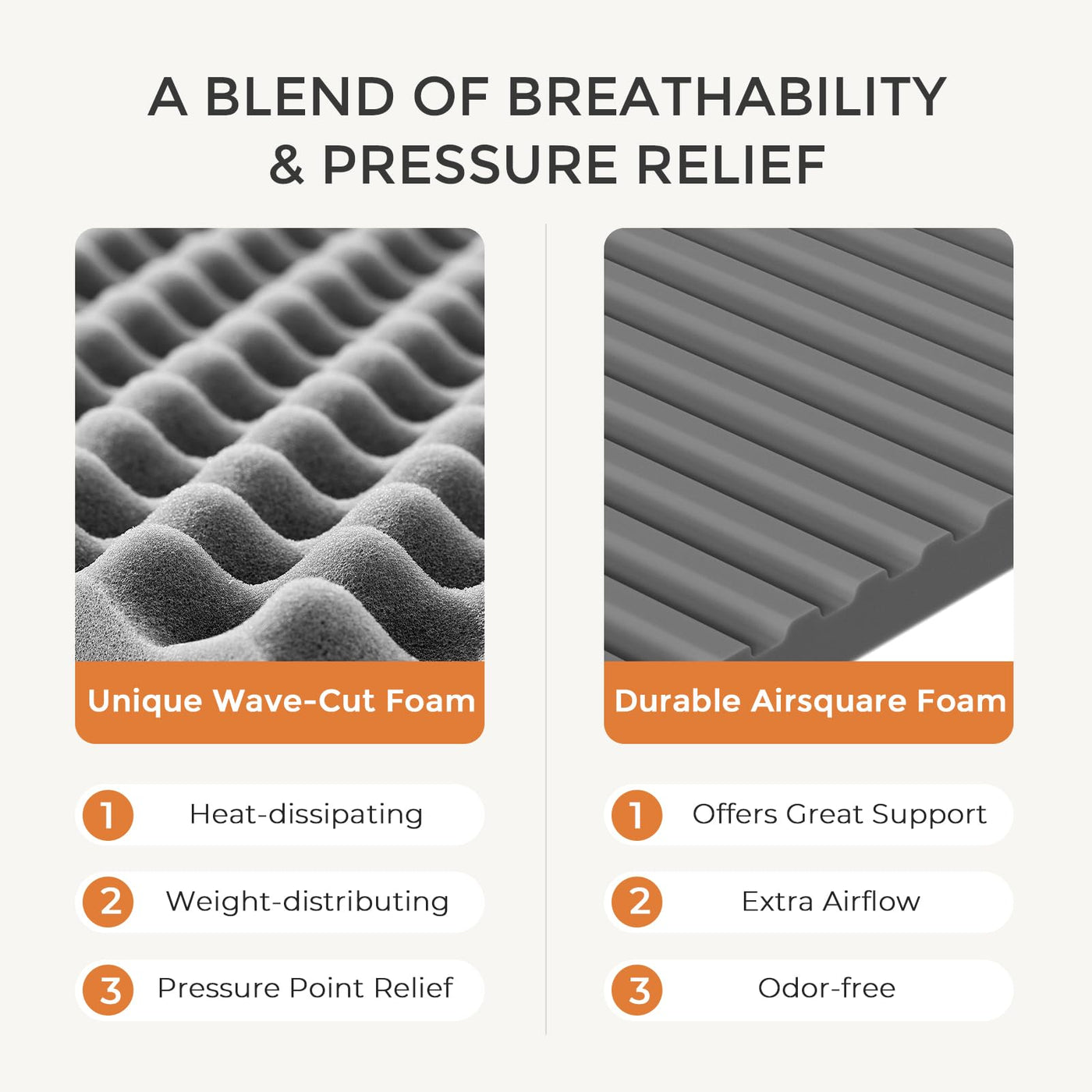 - Q: Does the Sweetnight Full Mattress help with heat retention? A: Yes, the Wave-cut Foam and AirSquare Support Foam are designed to dissipate body heat, reducing heat accumulation for a cooler sleep experience.