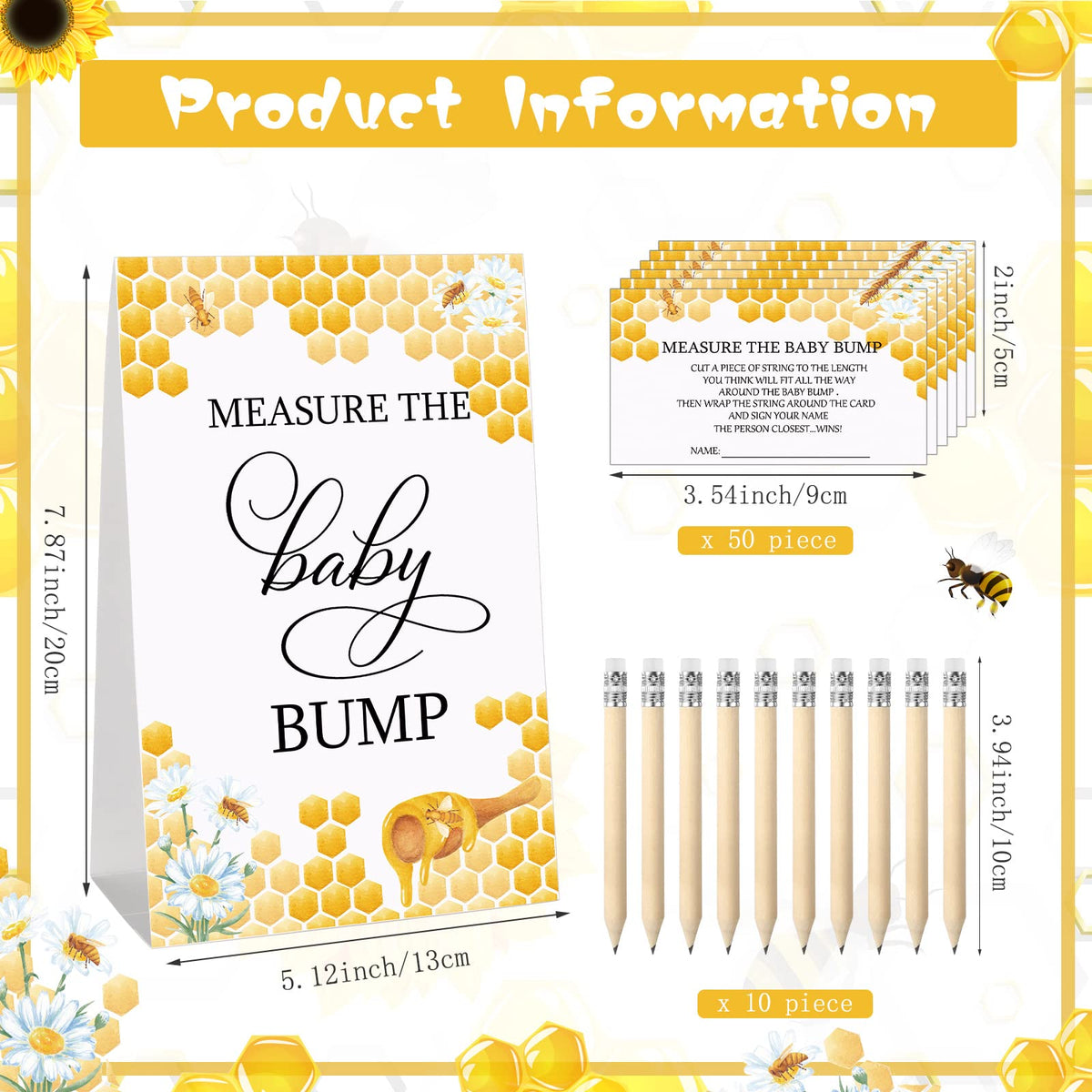 65 Pieces Baby Shower Game Set 1 Measure The Baby Bump Sign Measure Mommy'S Belly Game And 50 Guessing Cards 10 Pencils 2 Ribbon