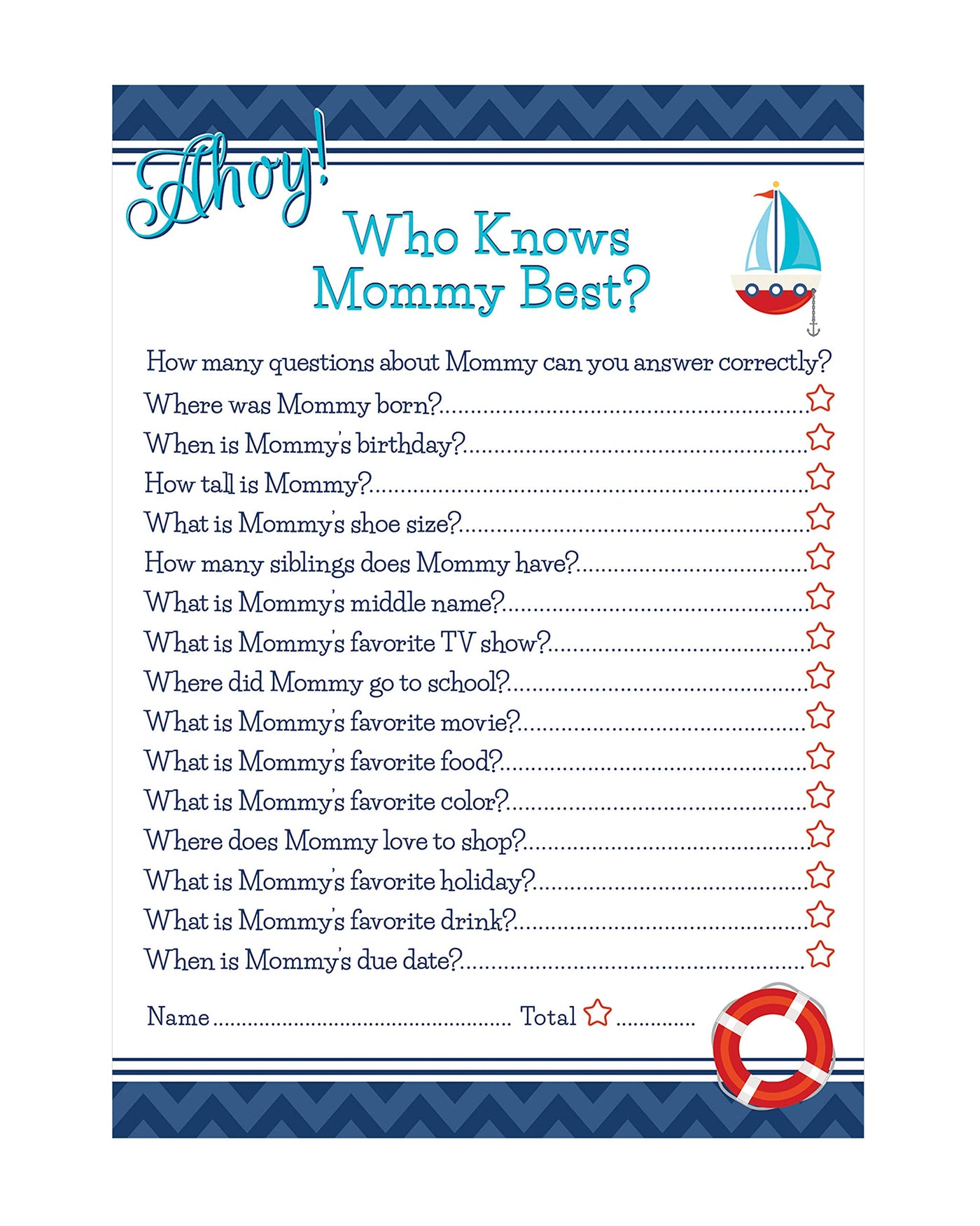 Ahoy Nautical Who Knows Mommy Best Baby Shower Game - 24 Count