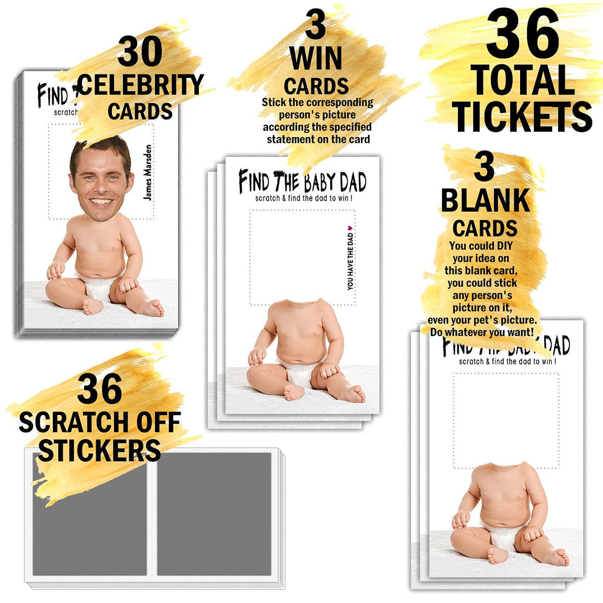 Baby Shower Games - Find The Baby Dad Scratch Off Celebrity Cards, Baby Shower Party Games Supplies - 36 Cards(Ba01-Bair)