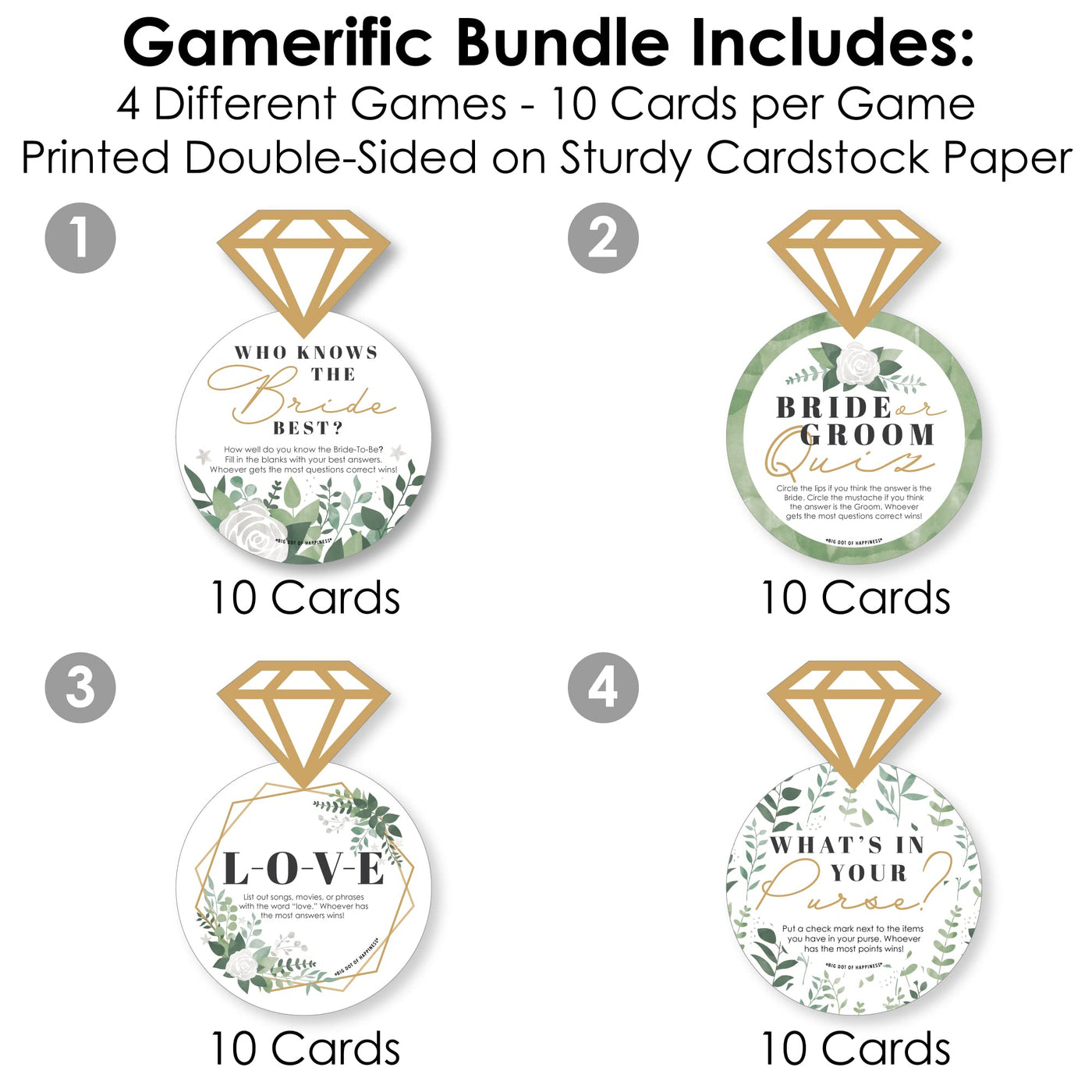 Big Dot Of Happiness Boho Botanical Bride - 4 Greenery Bridal Shower Games - 10 Cards Each - Gamerific Bundle