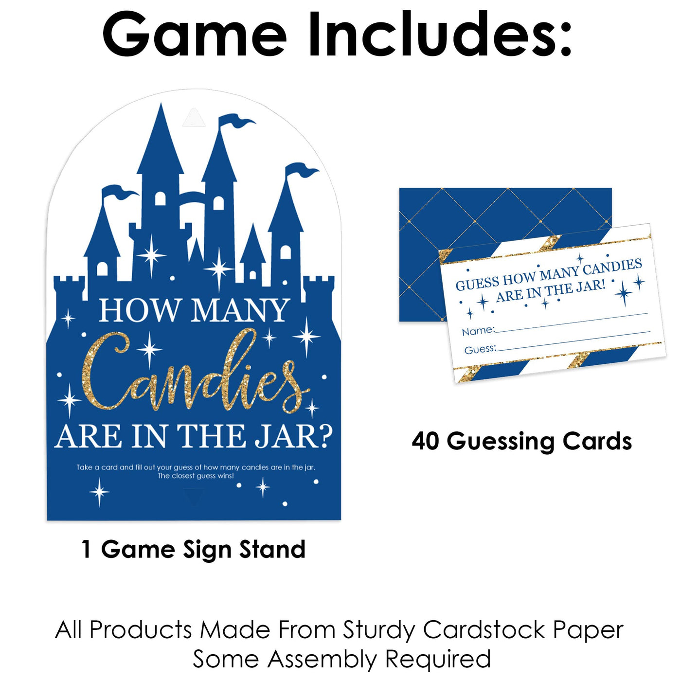 Big Dot Of Happiness Royal Prince Charming - How Many Candies Baby Shower Or Birthday Party Game - 1 Stand And 40 Cards - Candy
