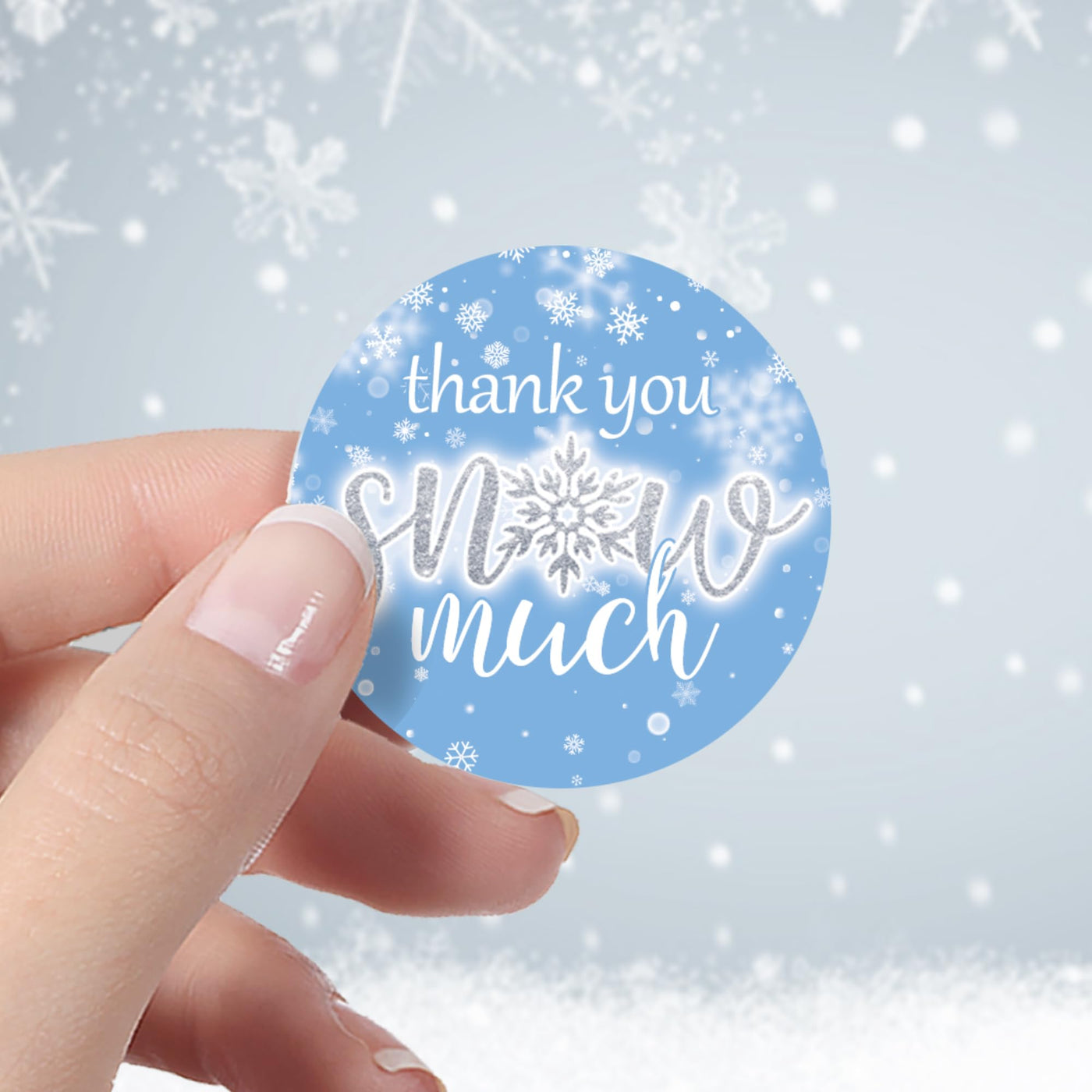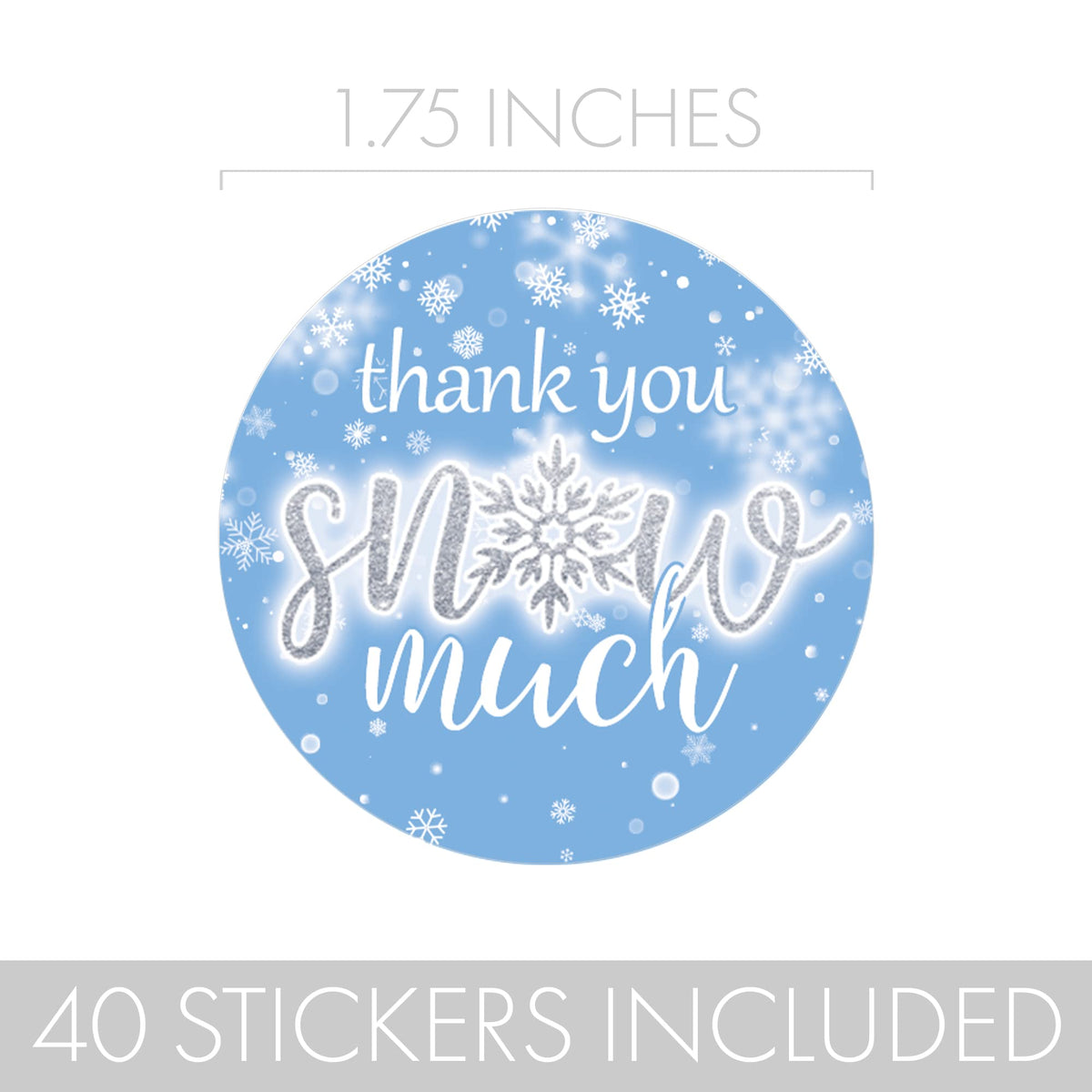 Blue Winter Snowflake Thank You Snow Much Party Favor Stickers - Baby Shower, Birthday Or Wedding - 40 Labels