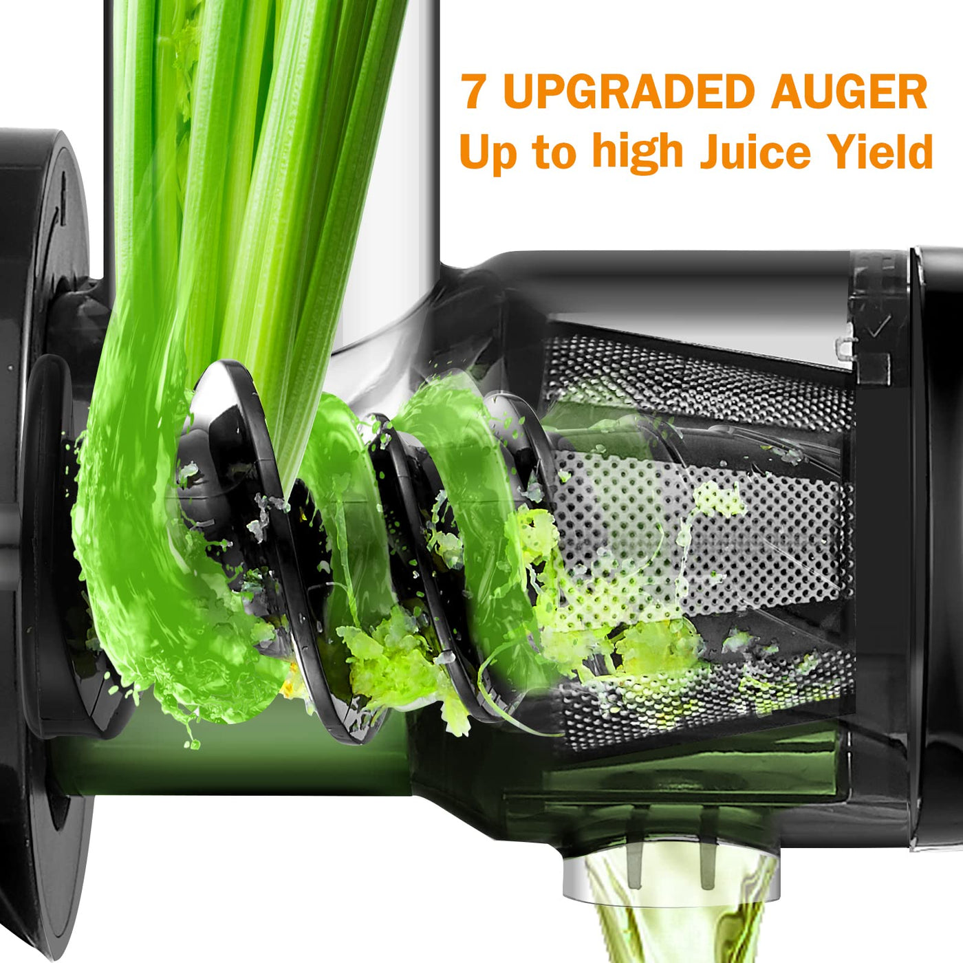 - Q: What is the main feature of the AMZCHEF Cold Press Juicer? A: The AMZCHEF Cold Press Juicer features a slow masticating design that helps extract maximum juice yield from fruits and vegetables while preserving their nutrients.