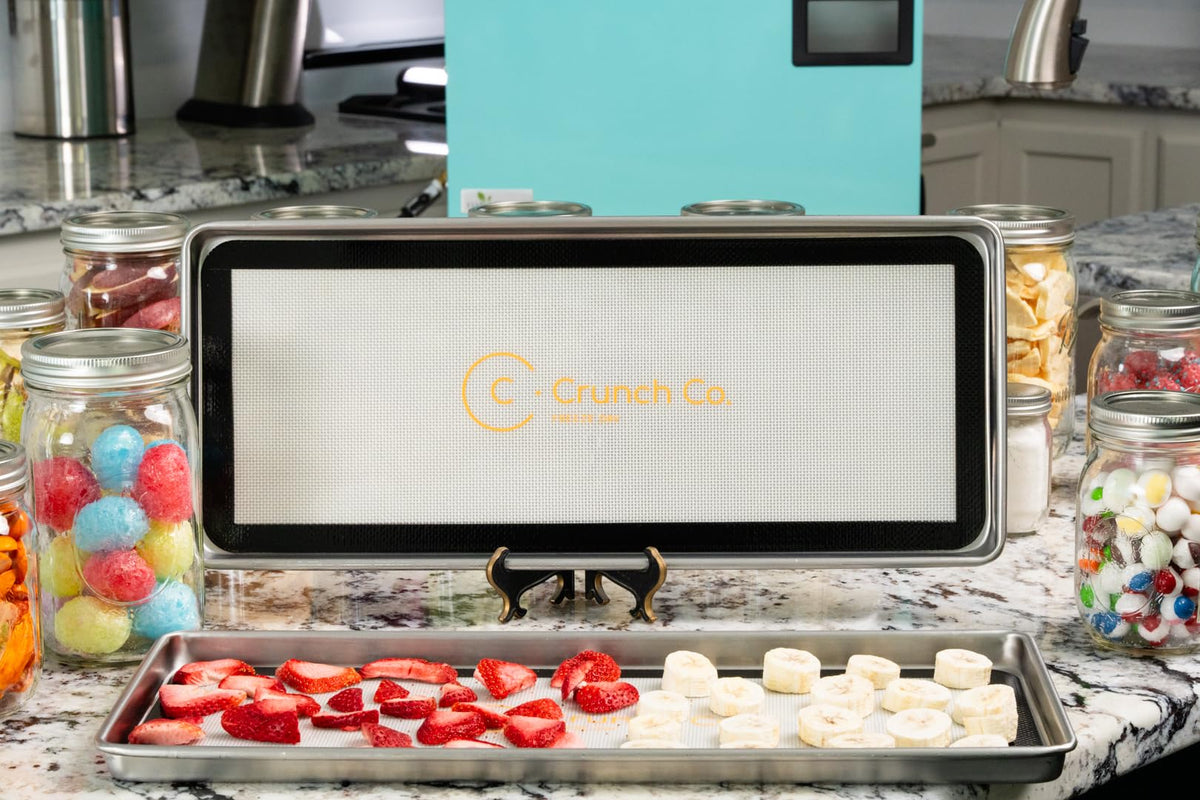 • Q: What are the dimensions of the Crunch Co. Silicone Mats? A: The Crunch Co. Silicone Mats are custom designed to fit Harvest Right freeze dryer trays, ensuring a perfect fit for optimal coverage.