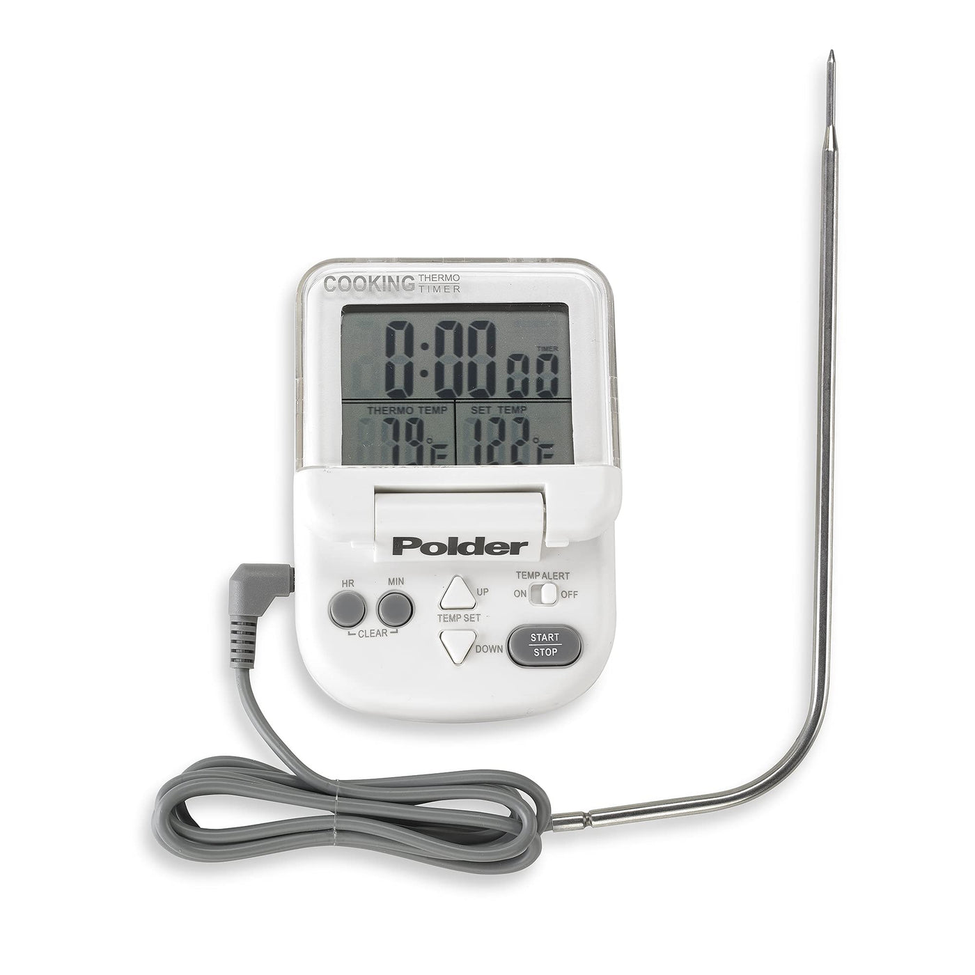 • Q: Does the thermometer have a programmable timer? A: Yes, the Polder Digital In-Oven Thermometer/Timer features a programmable timer that can be used independently or in conjunction with the thermometer.