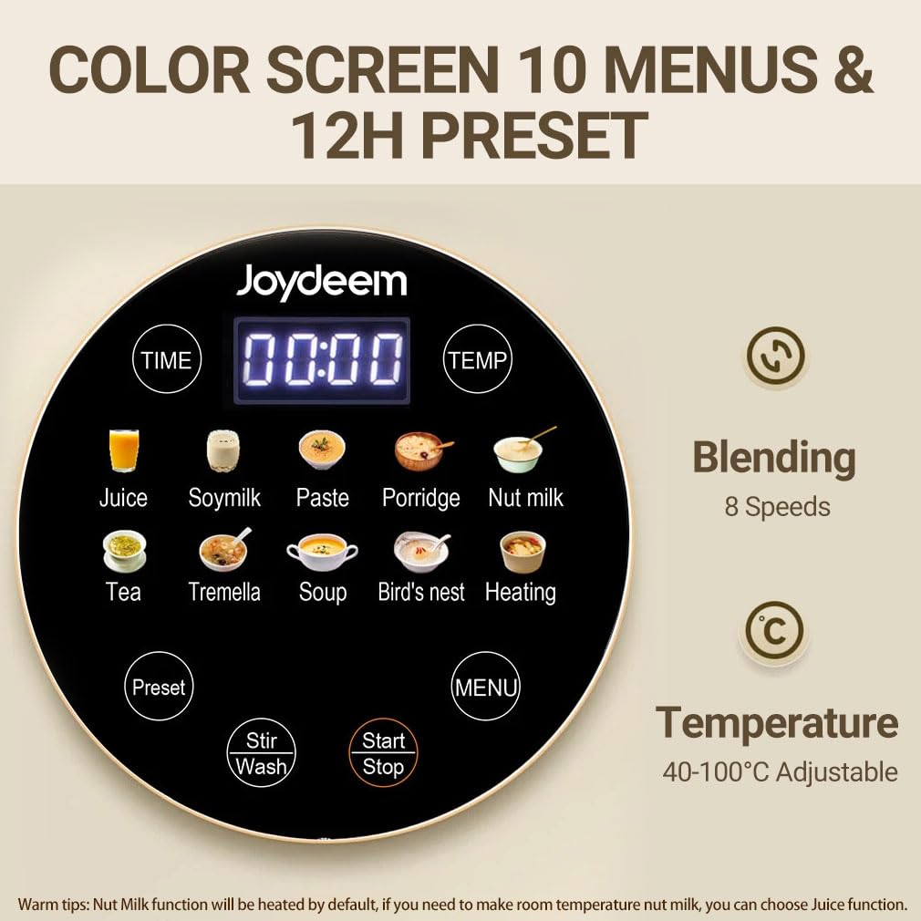 - Q: How many preset menus does the Joydeem JD-J03 have? A: The blender features 10 preset menus for different cooking needs.