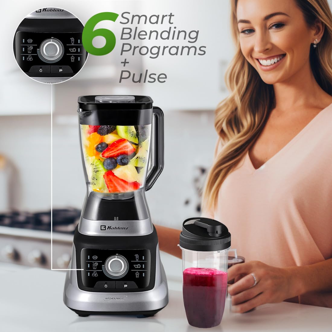 • Q: Can I use the Koblenz Professional Blender for making smoothies? A: Absolutely! The blender is specifically designed for making smoothies, juices, shakes, sauces, and other drinks effortlessly.